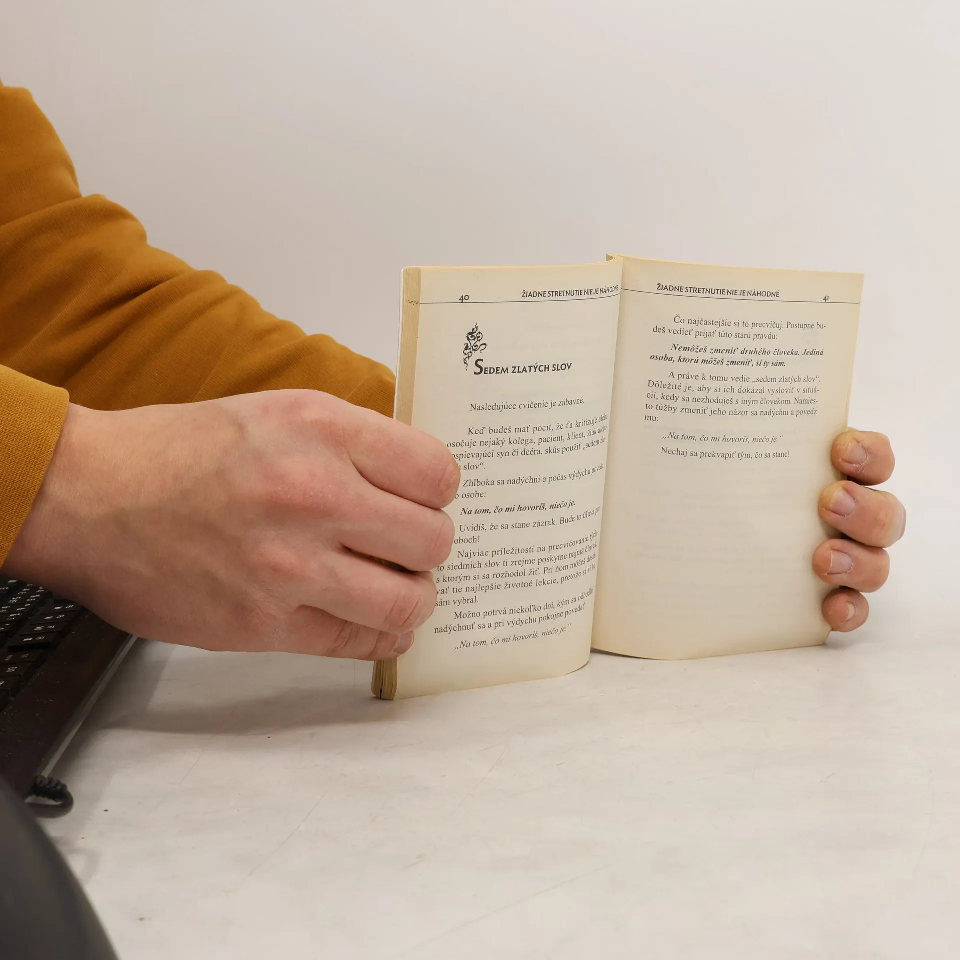 Človek si často vytvára mylné predstavy o sebe aj druhých, čo negatívne vplýva na našu komunikáciu s okolím. Autor je presvedčený, že pri každom stretnutí s nejakým človekom sa môžeme niečo naučiť. Predkladá sériu jednoduchých nápadov, pohľadov, rád a cvičení, ktoré nám pomôžu pravdivo vidieť sami seba aj druhých.