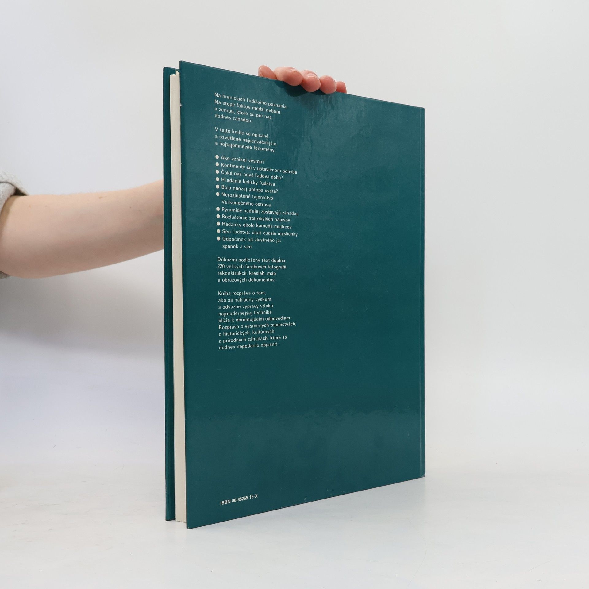Populárno-náučná publikácia o nevysvetliteľných fenoménoch, záhadách, ktoré presahujú hranice ľudského poznania, a pod. Z obsahu: Bytosti, ktoré neexistujú, Vesmír je plný záhad, Zem nie je bez záhad, Keď prišiel na Zem život,...