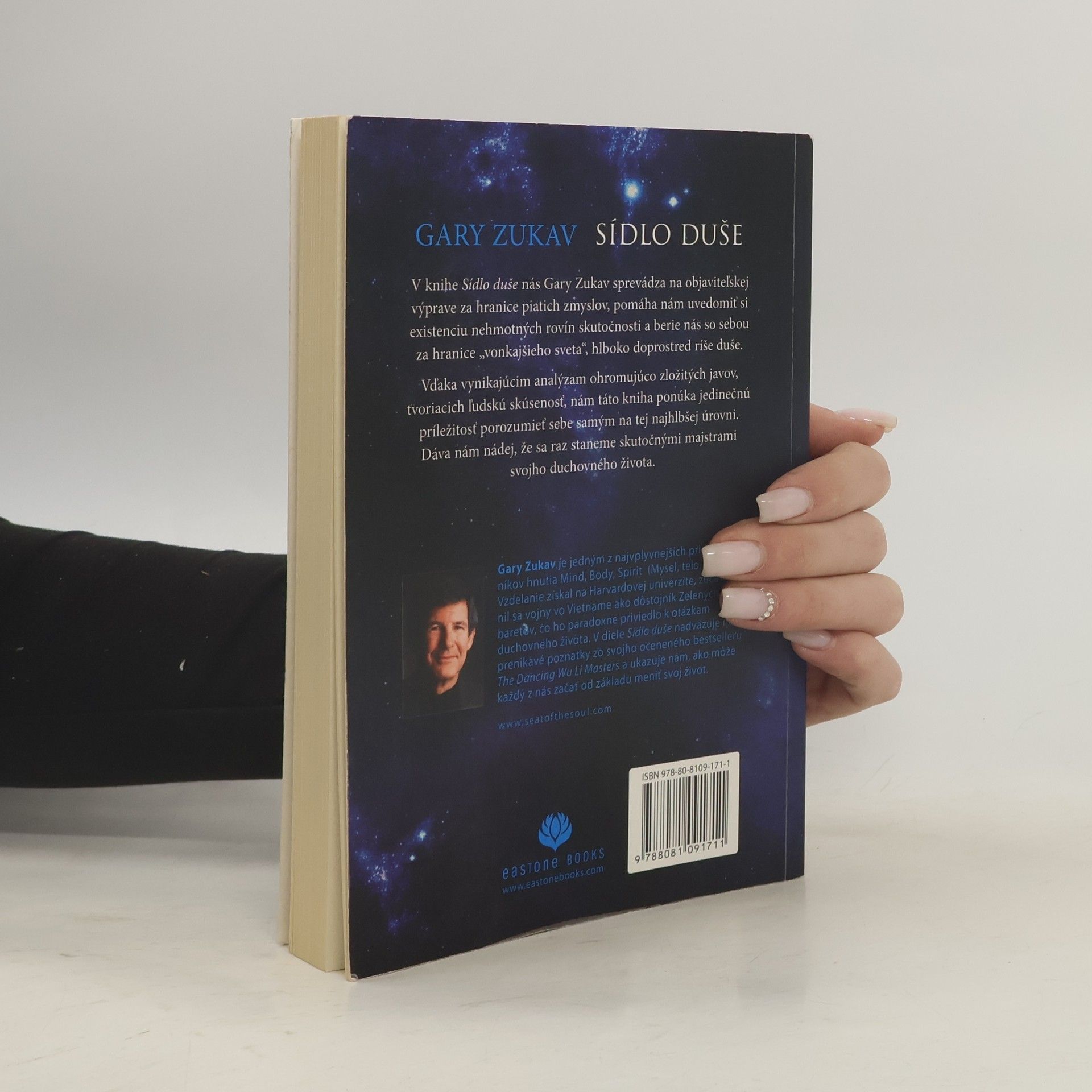 Slovensky. Objaviteľská výprava za hranice piatich zmyslov. Gary Zukav v knihe Sídlo duše napovedá, ako si uvedomiť existenciu nehmotných rovín skutočnosti. Vďaka hlbokým analýzam zložitých javov, ktoré spoluvytvárajú ľudskú skúsenosť, ponúka príležitosť lepšie porozumieť sebe samým. Dáva nádej, že sa raz staneme majstrami vlastného duchovného života. Gary Zukav je jedným z najvplyvnejších priekopníkov hnutia Mind, Body, Spirit (Myseľ, telo, duch). Vzdelanie získal na Harvardovej univerzite. Zúčastnil sa vojny vo Vietname ako dôstojník Zelených baretov, a táto skúsenosť ho priviedla k otázkam duchovného života. V diele Sídlo duše nadväzuje na prenikavé poznatky z bestselleru The Dancing Wu Li Masters a ukazuje, ako môže každý od základu zmeniť svoj život.