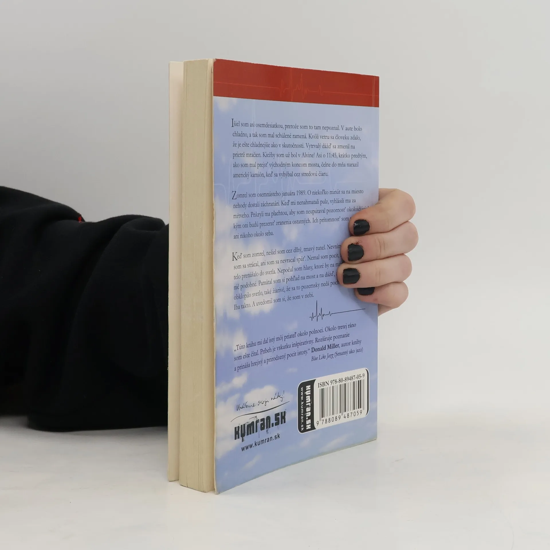 Išiel som asi osemdesiatkou, pretože som to tam nepoznal. V aute bolo chladno, a tak som mal schúlené ramená. Kvôli vetru sa človeku zdalo, že je ešte chladnejšie ako v skutočnosti. Vytrvalý dážď sa zmenil na prietrž mračien. Kiežby som už bol v Alvine! Asi o 11:45, krátko predtým, ako som mal prejsť východným koncom mosta, čelne do mňa narazil americký kamión, keď sa vyhýbal cez stredovú čiaru. Zomrel som osemnásteho januára 1989. O niekoľko minút sa na miesto nehody dostali záchranári. Keď mi nenahmatali pulz, vyhlásili ma za mŕtveho. Prikryli ma plachtou, aby som neupútaval pozornosť okoloidúcich, kým oni budú prezerať zranenia ostatných. Ich prítomnosť som nevnímal, ani nikoho okolo seba. Keď som zomrel, nešiel som cez dlhý, tmavý tunel. Nevnímal som, že by som sa strácal, ani som sa nevracal späť. Nemal som pocit, že by sa moje telo prenášalo do svetla. Nepočul som hlasy, ktoré by na mňa volali ani nič podobné. Pamätal som si pohľad na most a na dážď, a zrazu ma obklopilo svetlo, také žiarivé, že sa to pozemsky nedá pochopiť ani opísať. Iba takto. A uvedomil som si, že som v nebi.