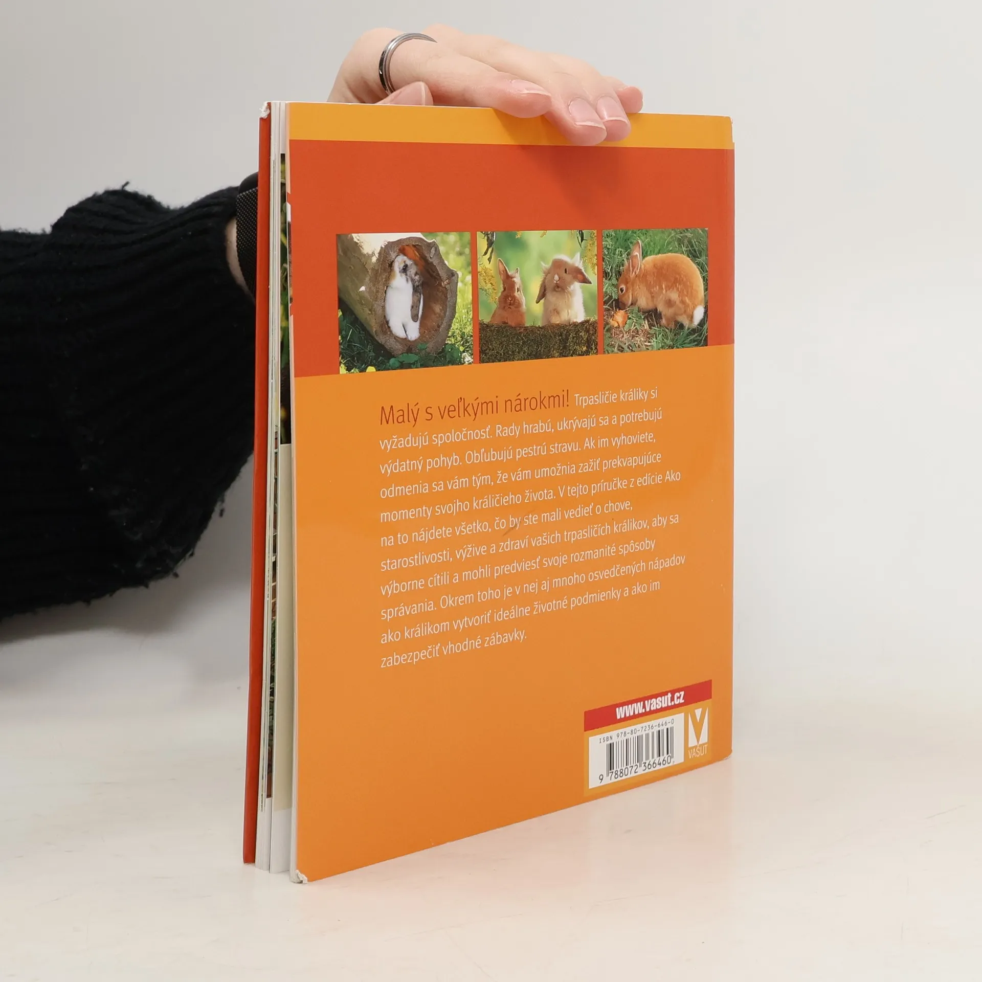 Nájdete tu všetky najdôležitejšie informácie – na čo treba dávať pozor pri výbere, ako vaše králiky postupne privyknete na nový domov, čo im bude chutiť, čo je pre nich zdravé a ako ich vhodne zabaviť. Ako v byte vybudovať miesto pre hry králikov, akú úlohu má pri ich chove zmyslové vnímanie - to všetko na osobitných obrázkovo–textových stranách. A nakoniec 10 tipov na úspešný chov, aby sa vaše zvieratko naozaj cítilo dobre.