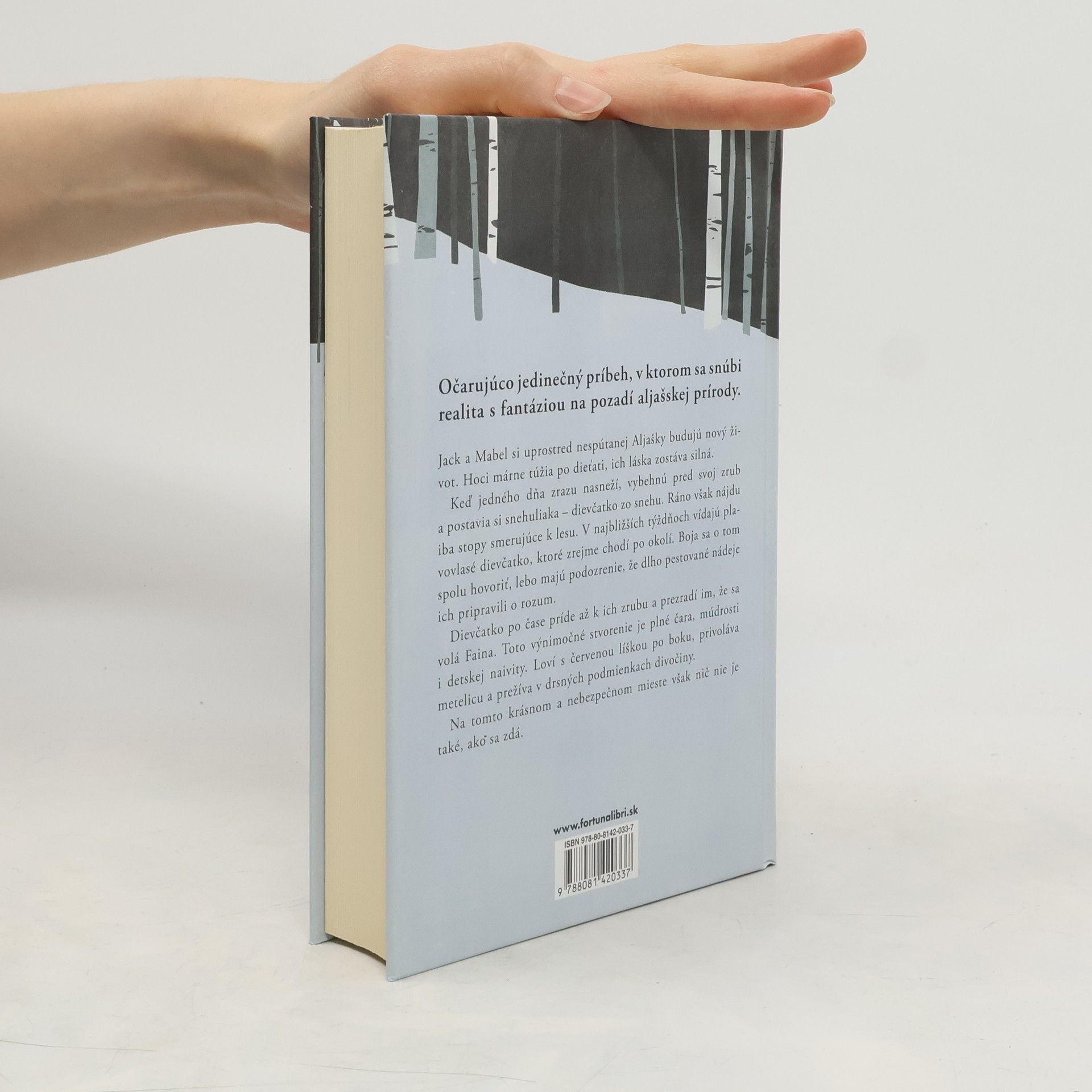 Očarujúco jedinečný príbeh, v ktorom sa snúbi realita s fantáziou na pozadí aljašskej prírody. Jack a Mabel si uprostred nespútanej Aljašky budujú nový život. Hoci márne túžia po dieťati, ich láska zostáva silná. Keď jedného dňa zrazu nasneží, vybehne pred svoj zrub a postavia si snehuliaka – dievčatko zo snehu. Ráno však nájdu iba stopy smerujúce k lesu. V najbližších týždňoch vídajú plavovlasé dievčatko, ktoré zrejme chodí po okolí. Boja sa o tom spolu hovoriť, lebo majú podozrenie, že dlho pestované nádeje ich pripravili o rozum. Dievčatko po čase príde až k ich zrubu a prezradí im, že sa volá Faina. Toto výnimočné stvorenie je plné čara, múdrosti i detskej naivity. Loví s červenou líškou po boku, privoláva metelicu a prežíva v drsných podmienkach divočiny. Na tomto krásnom a nebezpečnom mieste však nič nie je také, ako sa zdá.