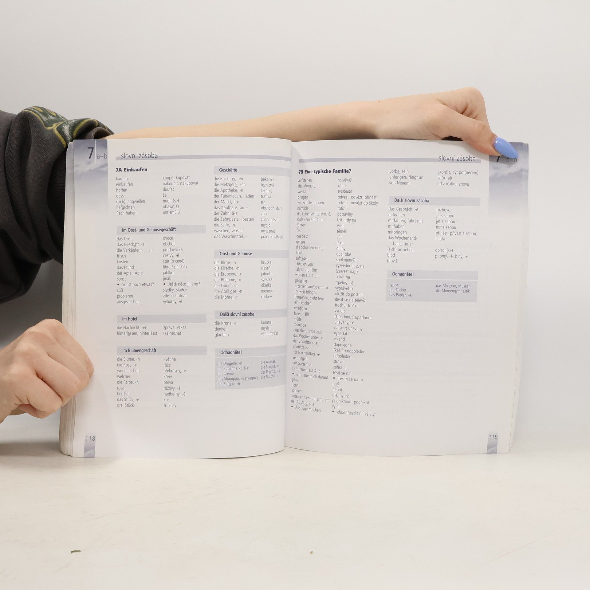Němčina pro začátečníky. 1. díl učebnice obsahuje 15 lekcí rozdělených do částí A, B, C. V části A jsou úvodní texty dialogické, propojené volnou dějovou linií.