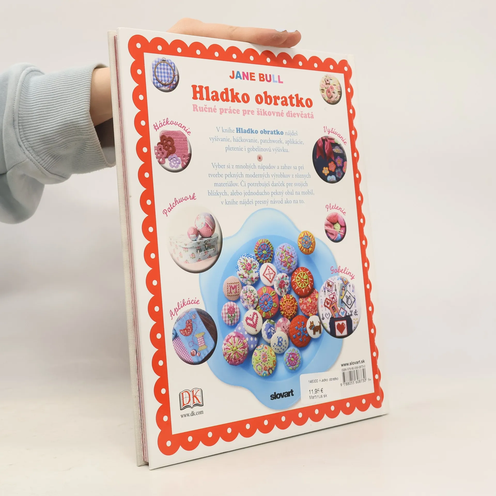 Knižka odborníčky na ručné práce Jane Bull obsahuje 50 inšpiratívnych a jednoduchých projektov, pri ktorých sa naučíte šiť, vyšívať, tvoriť. Môžete si spraviť taštičky, patchworkové vankúše, obrázky s aplikáciami a množstvo skvelých darčekov a vecí pre potešenie. Návody sú zrozumiteľné s obrázkami jednotlivých krokov postupu. Tvorba textilných doplnkov bude zábavou či už pre deti či dospelých, začiatočníkov alebo aj tých skúsenejších.
