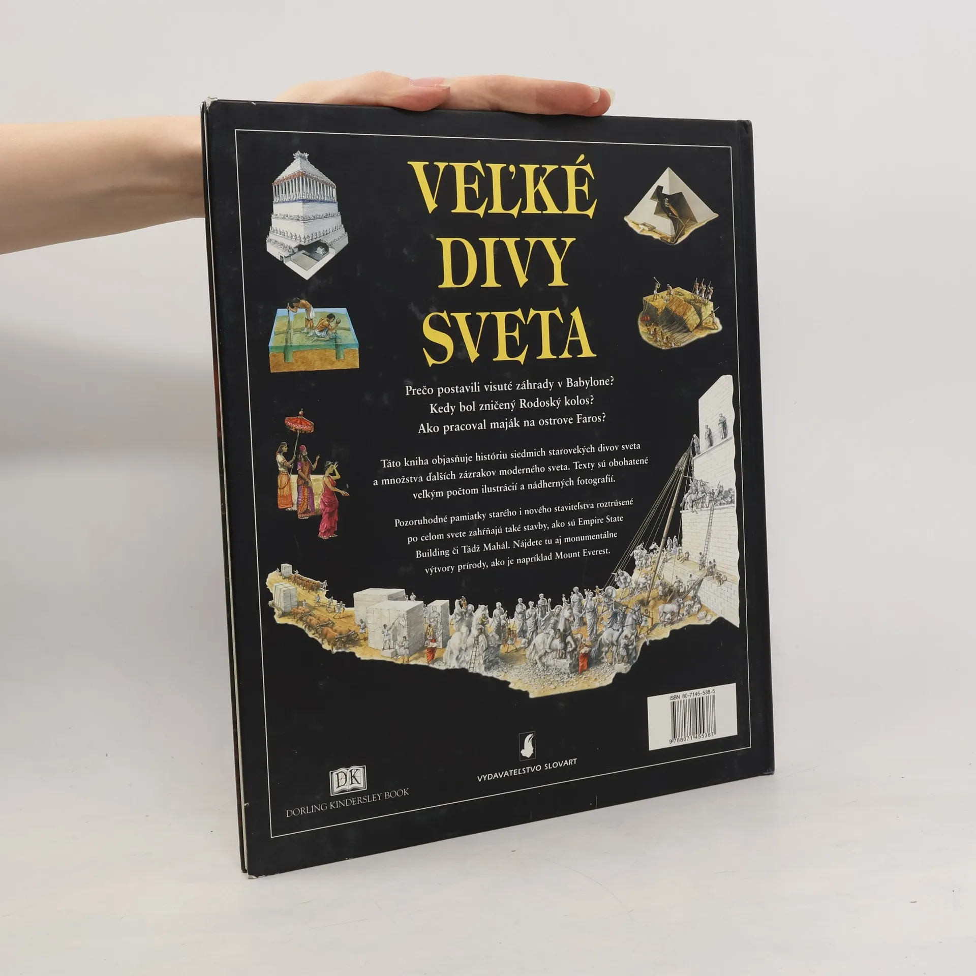 Antických sedem divov sveta predpokladaný vzhľad, miesto, kde sa nachádzali, a možný postup prác pri ich budovaní sa v tejto knihe zaujímavo porovnáva s objektmi modernej doby. Texty sú obohatené veľkým počtom ilustrácií a nádherných fotografií.