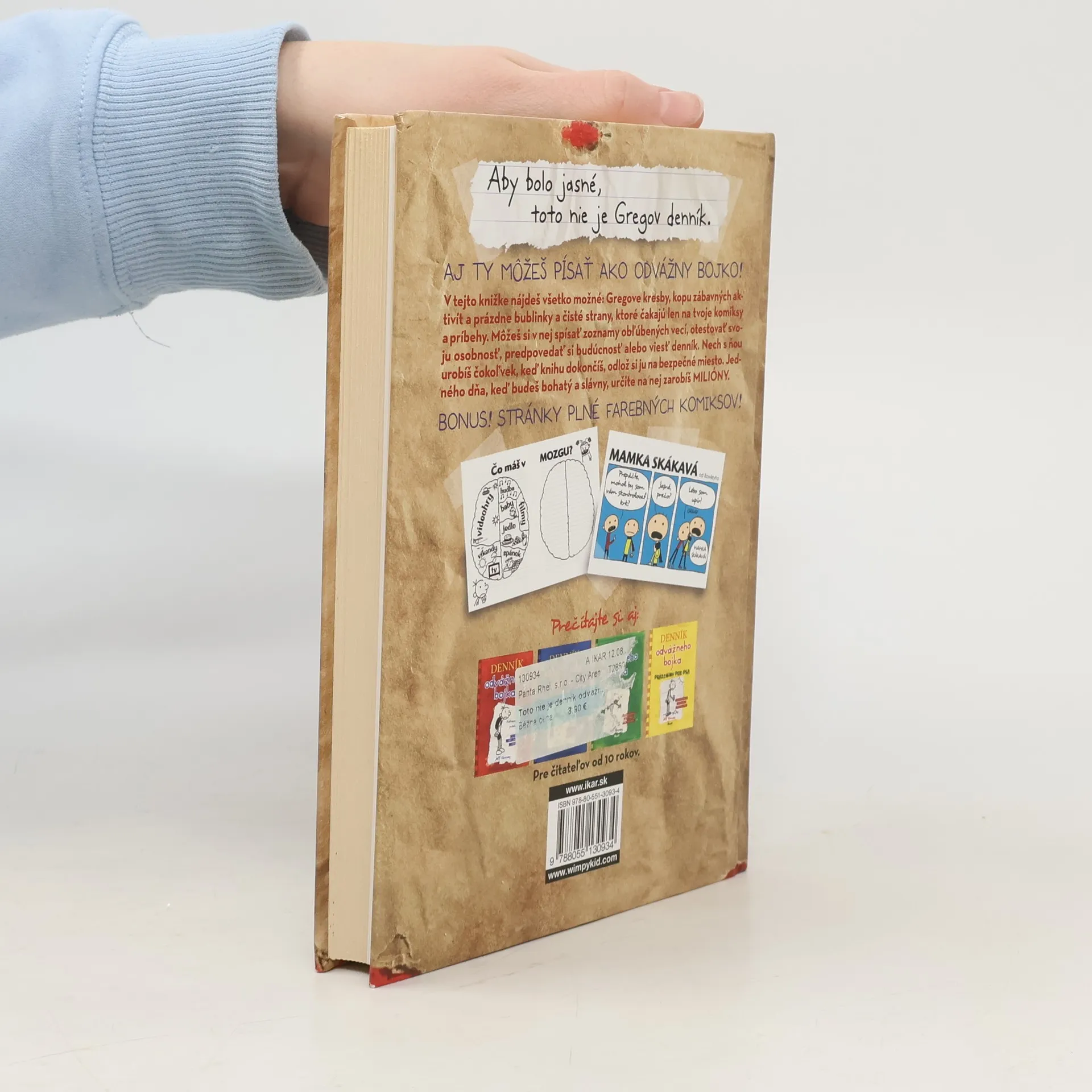 Aby bolo jasné, toto nie je Gregov denník. AJ TY MÔŽEŠ PÍSAŤ AKO ODVÁŽNY BOJKO! V tejto knižke nájdeš všetko možné: Gregove kresby, kopu zábavných aktivít a prázdne bublinky a čisté strany, ktoré čakajú len na tvoje komiksy a príbehy. Môžeš si v nej spísať zoznamy obľúbených vecí, otestovať svoju osobnosť, predpovedať si budúcnosť alebo viesť denník. Nech s ňou urobíš čokoľvek, keď knihu dokončíš, odlož si ju na bezpečné miesto. Jedného dňa, keď budeš bohatý a slávny, určite na nej zarobíš MILIÓNY. BONUS! STRÁNKY PLNÉ FAREBNÝCH KOMIKSOV!