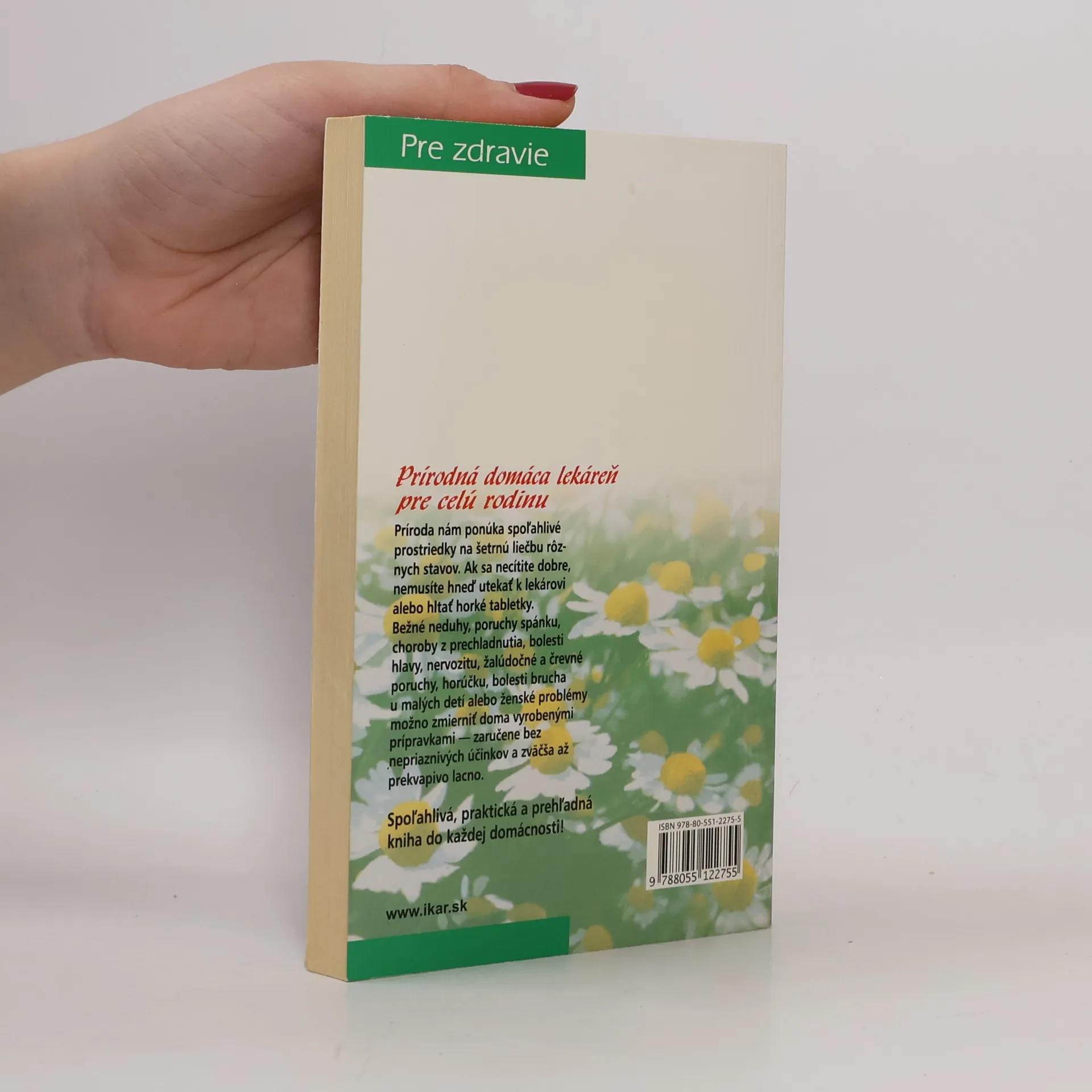 Kniha nabízí všechny potřebné informace o přírodní domácí lékárně a účinné samoléčbě osvědčenými prostředky z přírodních zdrojů. Když se necítíte dobře, nemusíte vždy spěchat k lékaři nebo polykat tabletky. Běžné potíže, jako poruchy spánku, nachlazení, bolest hlavy, nervozita, problémy žaludeční i střevní, horečky aj., můžete ošetřit vhodnými domácími prostředky - bez vedlejších účinků a levně