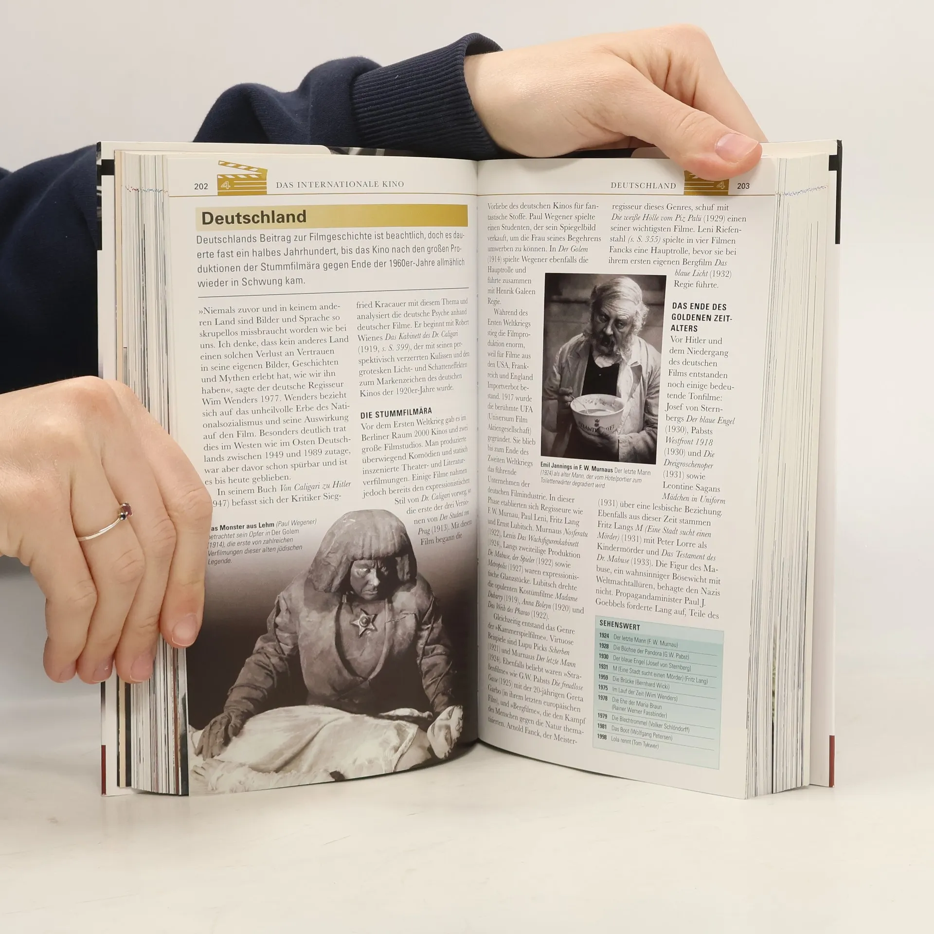 Dieses Buch ist Einführung in die Filmgeschichte und Filmlexikon gleichermaßen. Die Geschichte des Films von den Anfängen bis heute wird mit über 600 farbigen Illustrationen anschaulich dargestellt, angefangen bei einem umfassenden Einblick in die Geburt des Films, den ersten Celluloid-Streifen bis zu aktuellen Digital-Movies. Gleichzeitig stellt das Buch auch ein Nachschlagewerk zu einzelnen Filmen, Regisseuren und zum internationalen Kino dar, das z. B. die 100 einflussreichsten Filme einzeln und detailliert präsentiert, Filmländer wie Frankreich, Deutschland oder England mit Besonderheiten und stilprägenden Vertretern enzyklopädisch auflistet und 200 berühmte Regisseure mit Biografie, Werken und Charakteristika porträtiert.