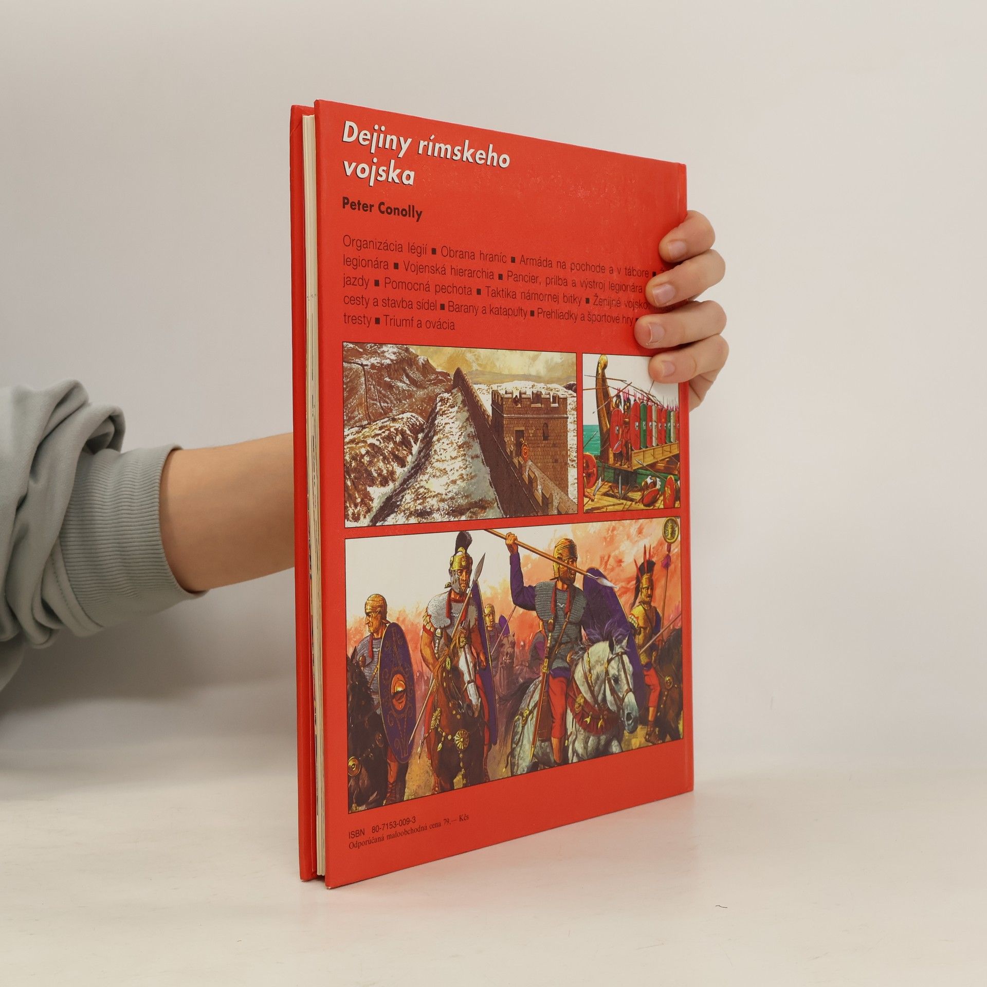 Každý vie, akou nepremožiteľnou mocou bola rímska armáda v čase najväčšieho rozkvetu Impéria. Menej známe však je, ako k tomu prispela premyslená organizácia, výzbroj či taktika rímskeho vojska. O týchto veciach zasvätene, v sprievode výstižných ilustrácií hovorí kniha určená rovnako mládeži ako dospelým. Kapitoly: Republikánska armáda, Légie, Vojsko na pochode a v tábore, Tábor, Boj, Výzbroj a výstroj republikánskej armády, Loďstvo a námorná moc Ríma, Vojnové lode, Caesarova armáda, Nové légie, Ženijné vojsko: mosty, Ženijné vojsko: cesty a obliehacie práce, Blokáda, Výzbroj a výstroj za Caesara, Cisárska armáda, Hranice, Cisárske légie, Prétoriánske a mestské kohorty, Život legionára, Vojenská hierarchia, Prilba a brnenie legionára, Výzbroj a výstroj legionára, Vojsko na pochode, Pechota pomocných zborov, Obrana hraníc, Jazda, Výzbroj a výstroj jazdy, Obliehanie-taktika a obliehacie stroje, Prehliadky a športové hry, Obliehacie zbrane-barany a katapulty, Odmeny a tresty, Triumf a ovácia, Titov triumf.