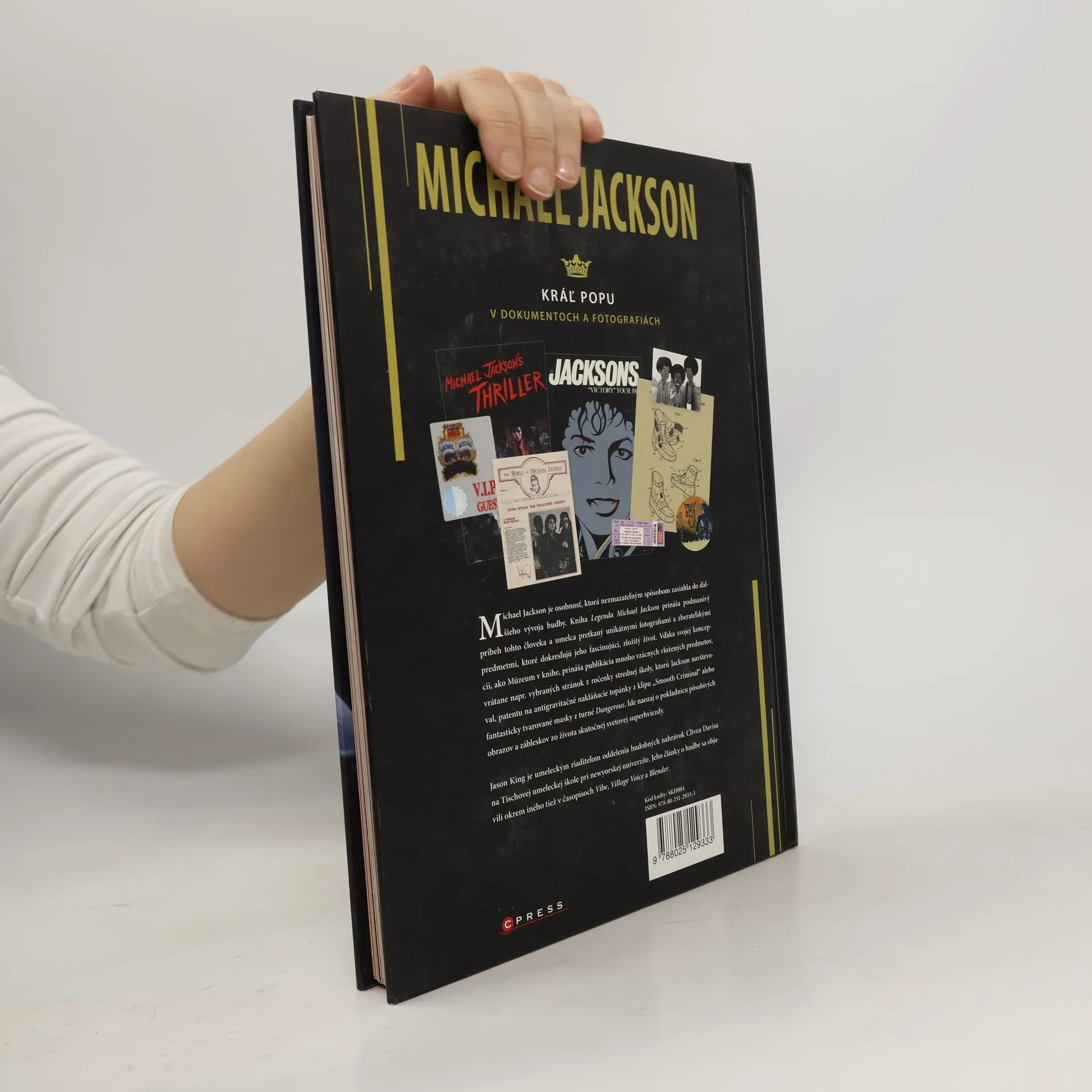 Michael Jackson je osobnosť, ktorá nezmazateľným spôsobom zasiahla do ďalšieho vývoja hudby. Kniha Legenda Michael Jackson prináša podmanivý príbeh tohto človeka a umelca pretkaný unikátnymi fotografiami a zberateľskými predmetmi, ktoré dokresľujú jeho fascinujúci, zložitý život. Vďaka svojej koncepcii, ako Múzeum v knihe, prináša publikácia mnoho vzácnych vložených predmetov, vrátane napr. vybraných stránok z ročenky strednej školy, ktorú Jackson navštevoval, patentu na antigravitačné nakláňacie topánky z klipu „Smooth Criminal“ alebo fantasticky tvarované masky z turné Dangerous. Ide naozaj o pokladnicu pôsobivých obrazov a zábleskov zo života skutočnej svetovej superhviezdy. Jason King je umeleckým riaditeľom oddelenia hudobných nahrávok Clivea Davisa na Tischovej umeleckej škole pri newyorskej univerzite. Jeho články o hudbe sa objavili okrem iného tiež v časopisoch Vibe, Village Voice a Blender.