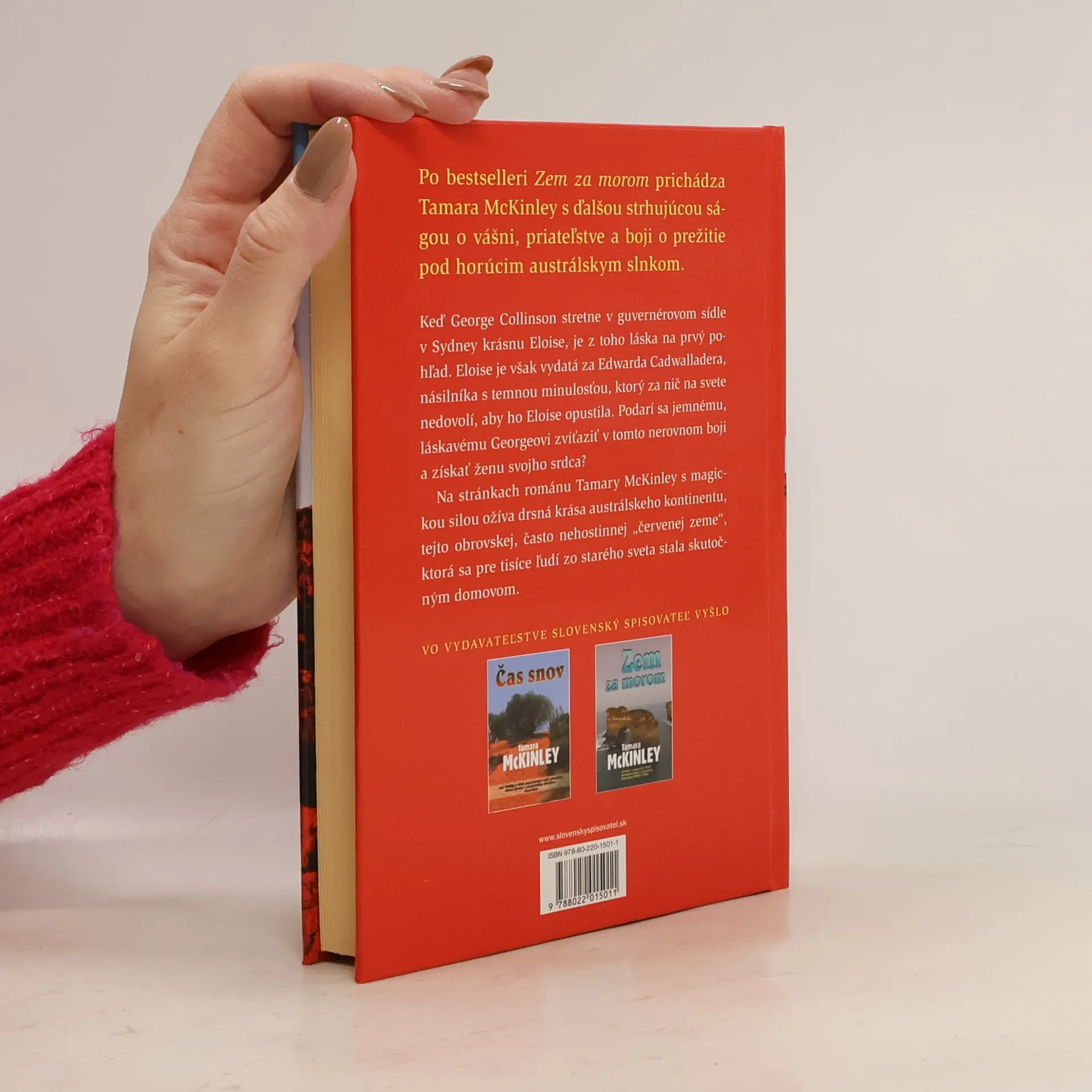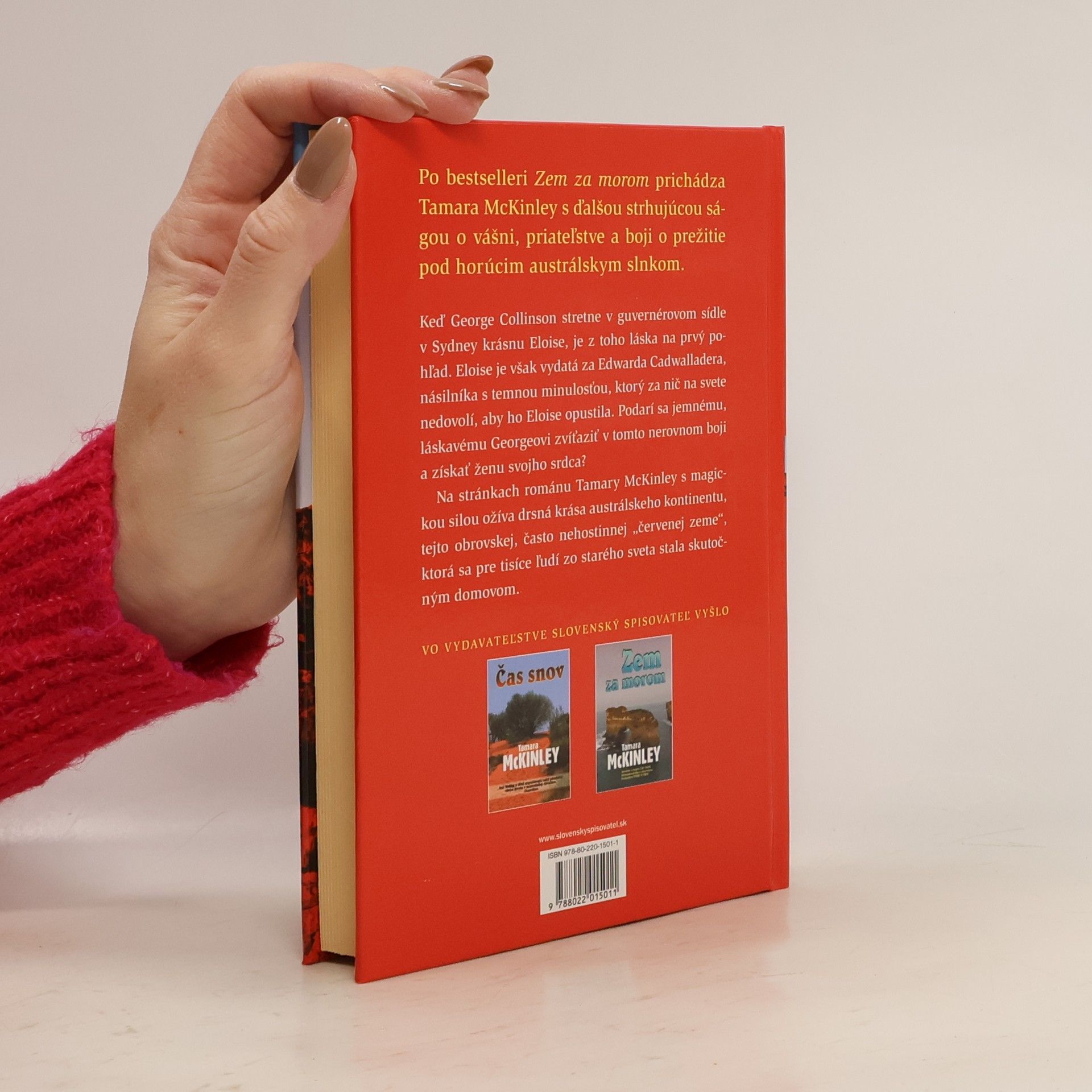 Strhujúca sága o láske, vášni a boji o prežitie pod horúcim austrálskym slnkom. Po bestselleri Zem za morom prichádza Tamara McKinley s ďalšou strhujúcou ságou. Keď George Collinson stretne v guvernérovom sídle v Sydney krásnu Eloise, je z toho láska na prvý pohľad. Eloise je však vydatá za Edwarda Cadwalladera, násilníka s temnou minulosťou, ktorý za nič na svete nedovolí, aby ho Eloise opustila. Podarí sa jemnému láskavému Georgeovi zvíťaziť v tomto nerovnom boji a získať ženu svojho srdca ? Na stránkach románu s magickou silou ožíva drsná krása austrálskeho kontinentu, tejto obrovskej, často nehostinnej červenej zeme, ktorá sa pre tisíce ľudí zo starého sveta stala skutočným domovom.