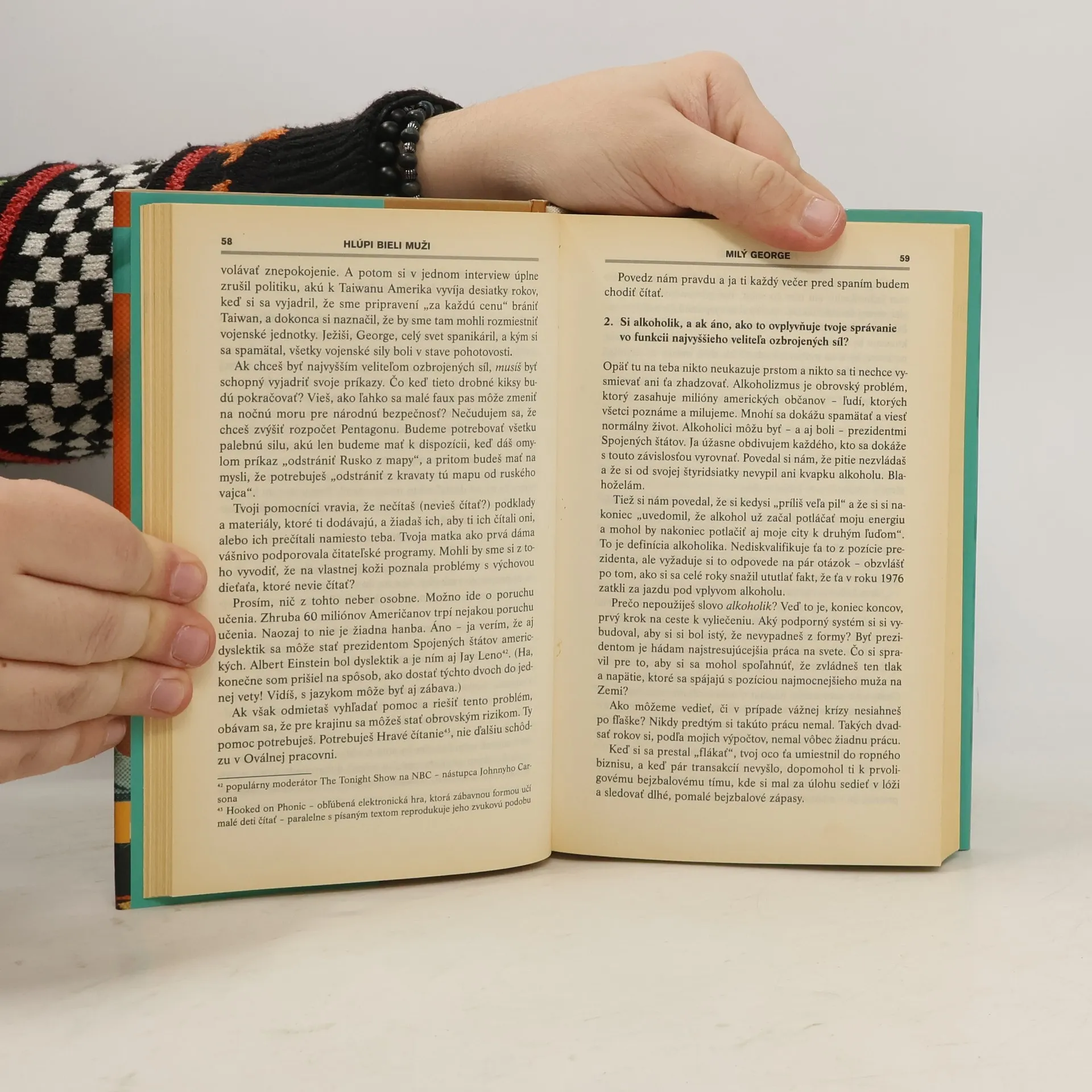 Kniha je humornou, ironickou a čiernou výpravou americkými dejinami a súčasnou politikou. Autor kritizuje všetky americké vlády ako populistické a klamárske, pričom sám sa dopúšťa niektorých skreslení a neprofesionálnych dedukcií. Napriek tomu ponúka zaujímavý pohľad na americkú politiku a odhaľuje mnohé úvahy a údaje bez zastierania ich pozadia. Michael Moore hodnotí nové storočie a lobistickú skupinu hlúpych bielych mužov, pričom kniha slúži ako jeho manifest o trestných činoch a priemernosti. Vyzýva OSN, aby zvrhla Bushovcov, a žiada Afroameričanov, aby nad nepriateľskými obchodmi zavesili tabule LEN BELOSI. Jeho ostrá kritika prezidenta Georgea W. Busha, ktorého označuje za zlodeja a uzurpátora, je prepojená s jeho názorom na americkú politickú scénu. Bill Clinton je označený za jedného z najlepších republikánskych prezidentov, pričom Moore poukazuje na to, že Američania sa v deväťdesiatych rokoch zaujímali len o povrchné škandály. Kritizuje korporácie, ktoré ovládajú krajinu a bránia chudobným v prístupe k bohatstvu. Podľa prieskumov je 60 percent Američanov nespokojných so svojou vlasťou, kde vládnu peniaze a nečestné súdy. Ak vás zaujíma, čo trápi Ameriku, táto kniha je pre vás.