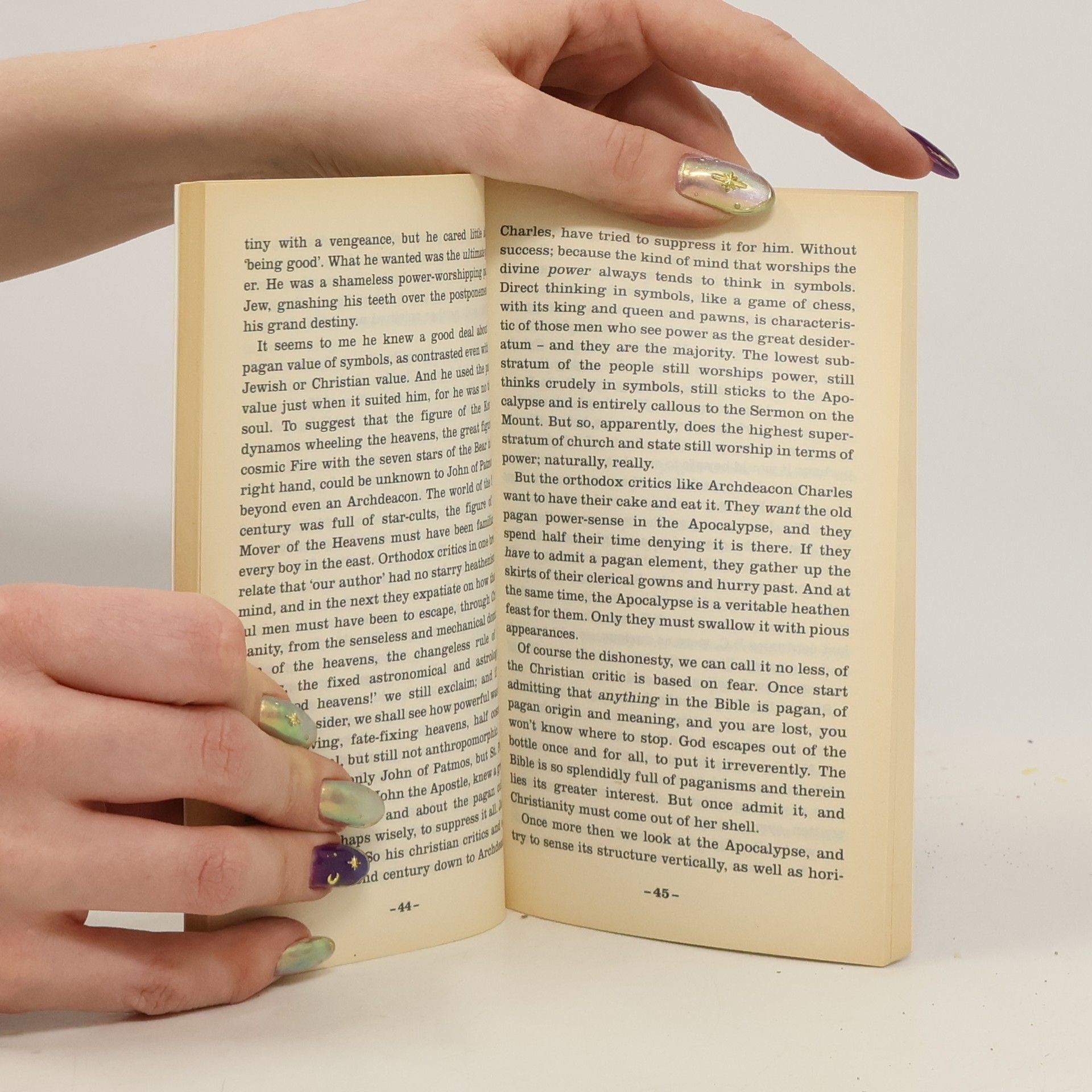 Tato kniha je posledním útokem D.H. Lawrence proti materialistické a zintelektualizované západní civilicazi. Jeho poetický komentář Knihy Zjevení odsuzuje pokrytectví průměrných vrstev a vyzdvihuje pohanské hodnoty zničené křesťanstvím, vědou a demokracií. Lawrencova fascinující interpretace symbolů, zvířat a čísel odkrývá současně nitro jeho samého.