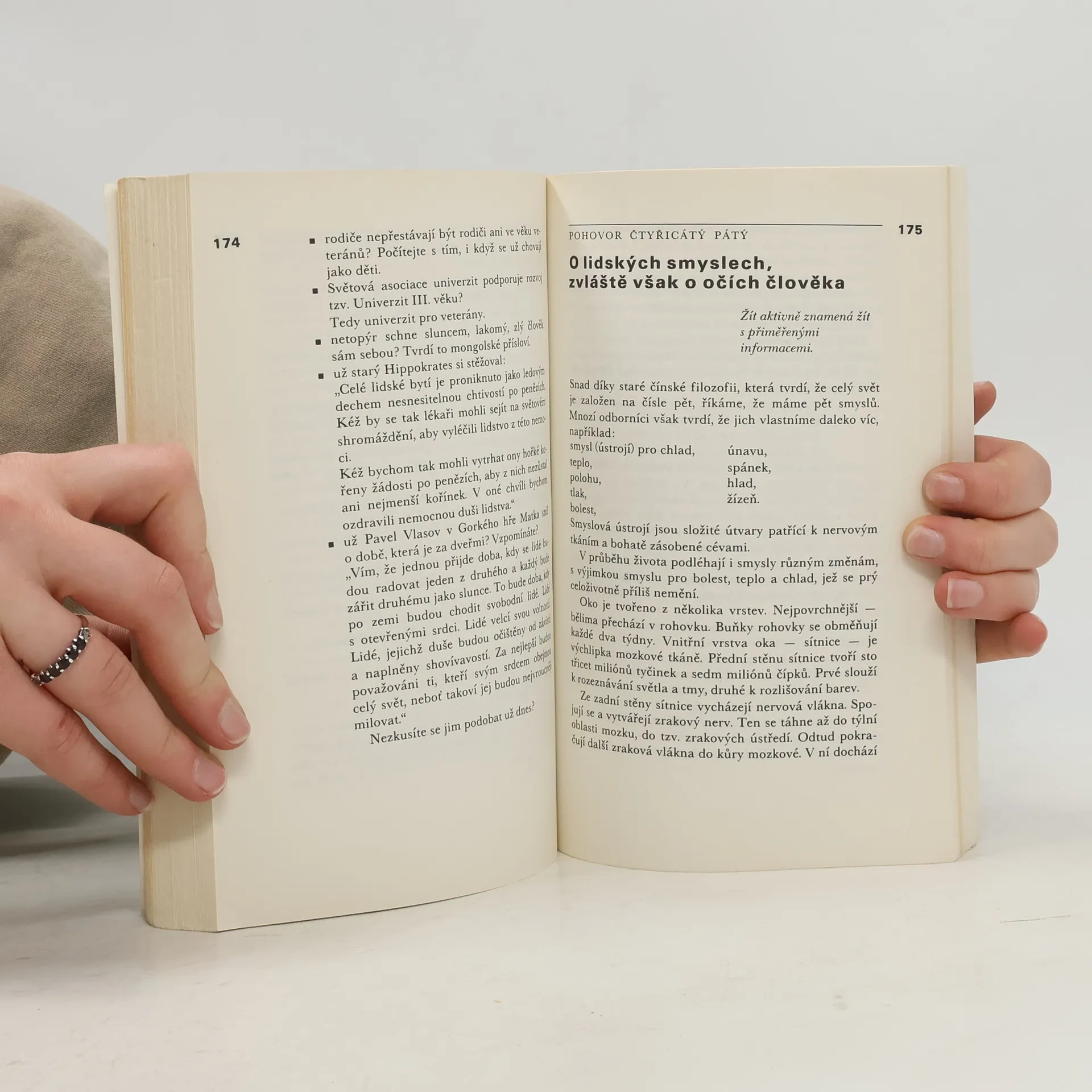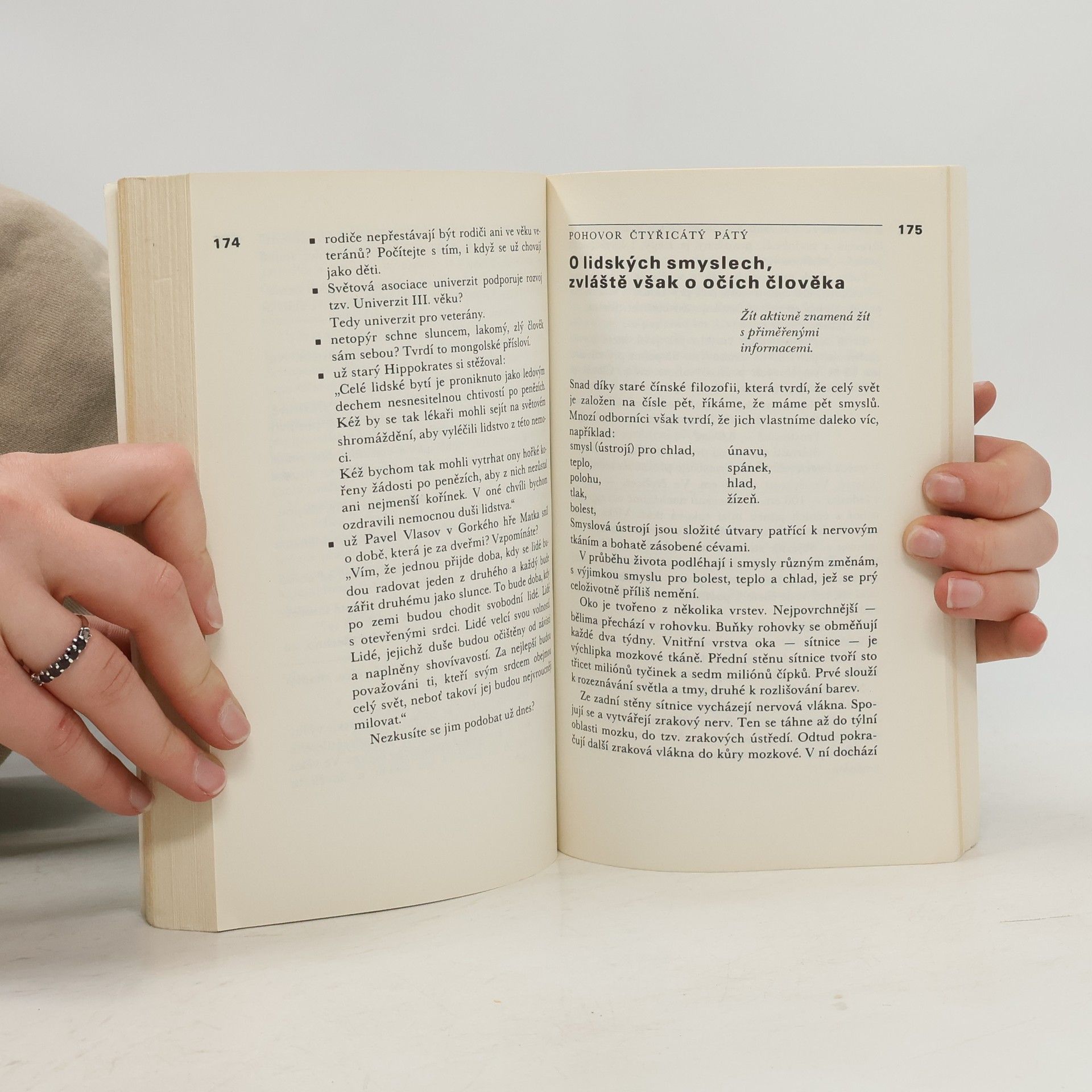Vtipně, formou krátkých listů vypraví autor o poměru ke stáří u antických národů, o zevních a vnitřních činitelích ovlivňujících proces stárnutí a o dávné touze lidstva po prodloužení života. Upozorňuje na vhodný životní režim ve stáří.
