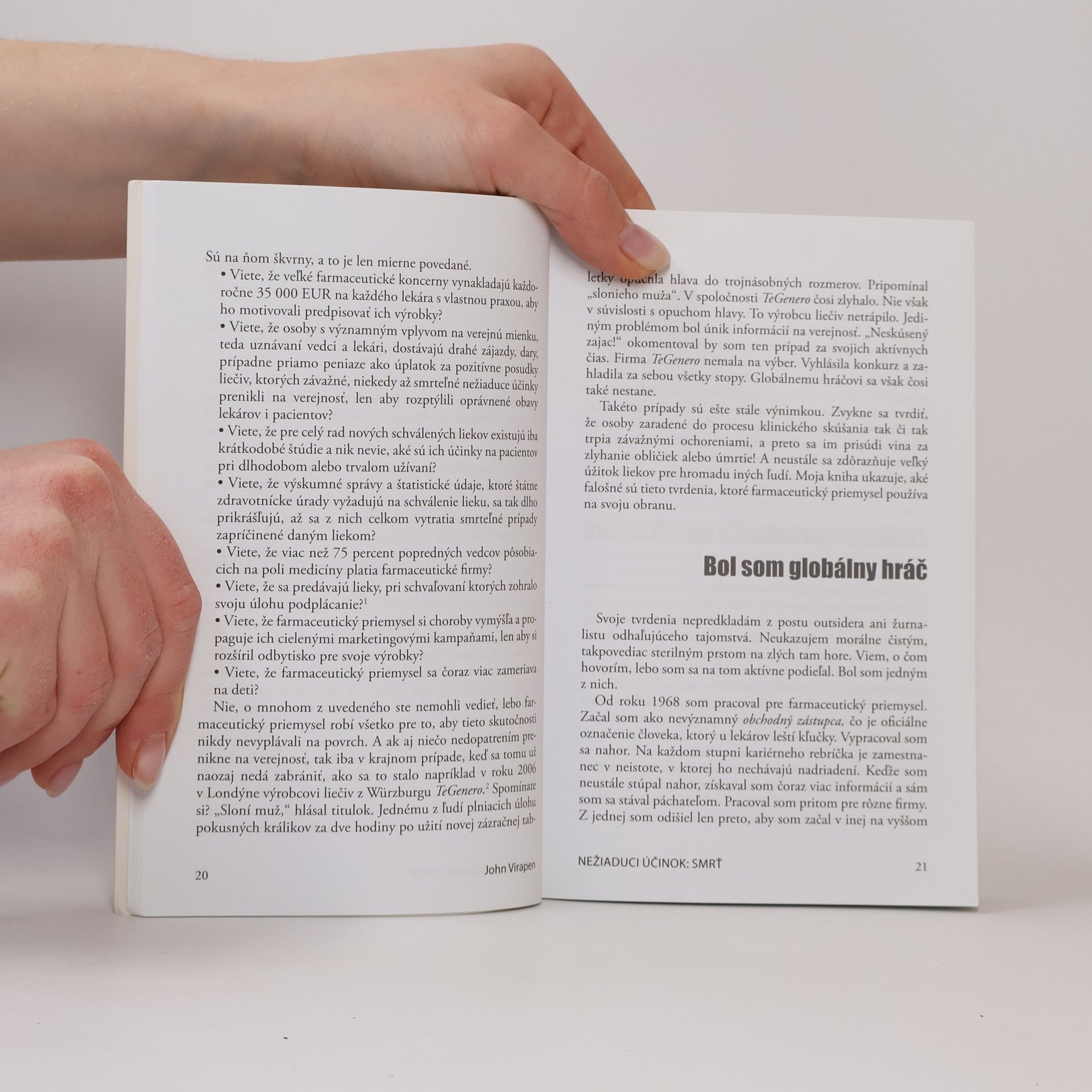 Táto kniha rozpráva pravdivý príbeh o korupcii, podplácaní a podvodoch. Napísal ju bývalý riaditeľ farmaceutického koncernu Dr. John Virapen, ktorý pozná interné praktiky a postupy používané vo farmaceutických gigantoch. Druhé vydanie.