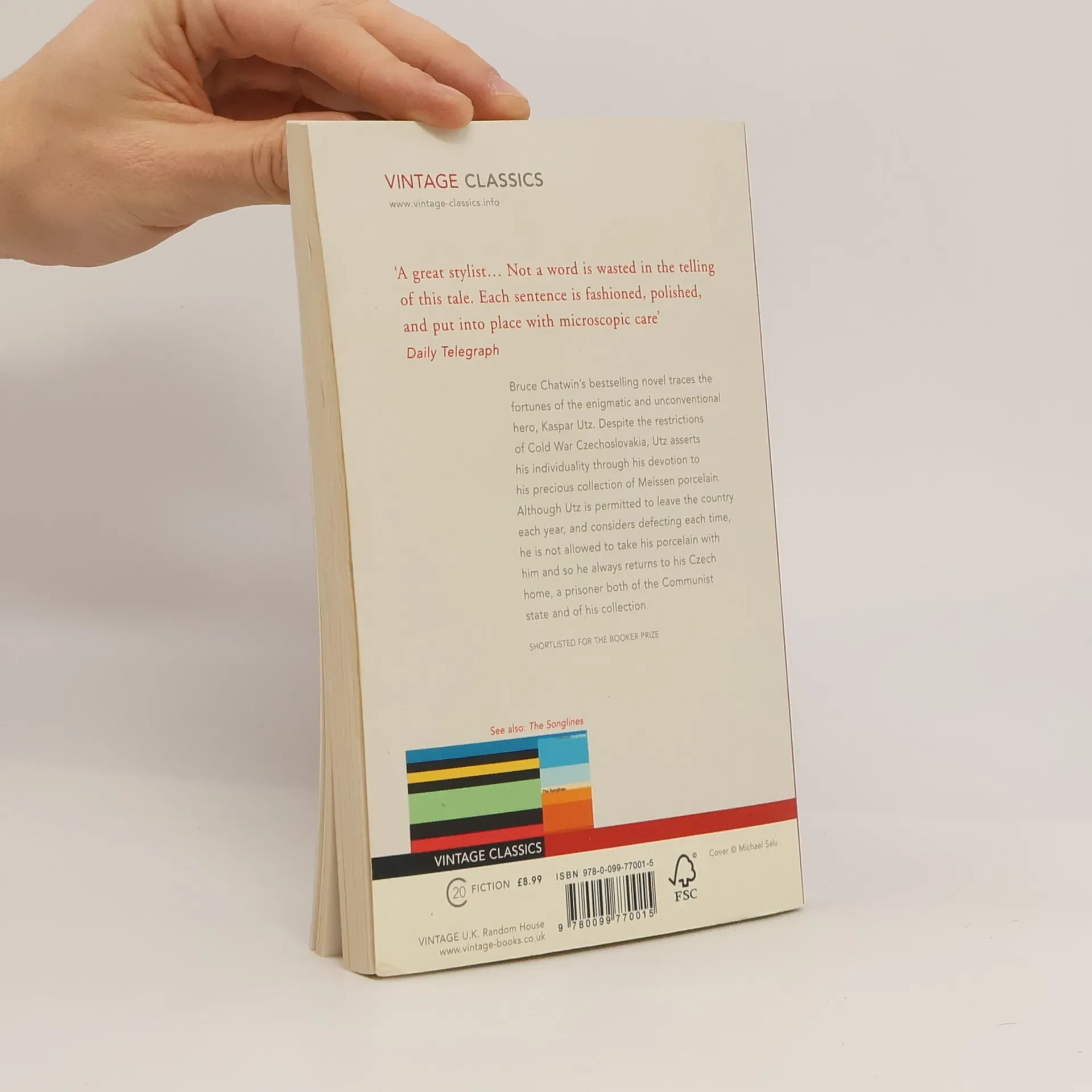 SHORTLISTED FOR THE BOOKER PRIZE. Bruce Chatwin's bestselling novel traces the fortunes of the enigmatic and unconventional hero, Kaspar Utz. Despite the restrictions of Cold War Czechoslovakia, Utz asserts his individuality through his devotion to his precious collection of Meissen porcelain. Although Utz is permitted to leave the country each year, and considers defecting each time, he is not allowed to take his porcelain with him and so he always returns to his Czech home, a prisoner both of the Communist state and of his collection.