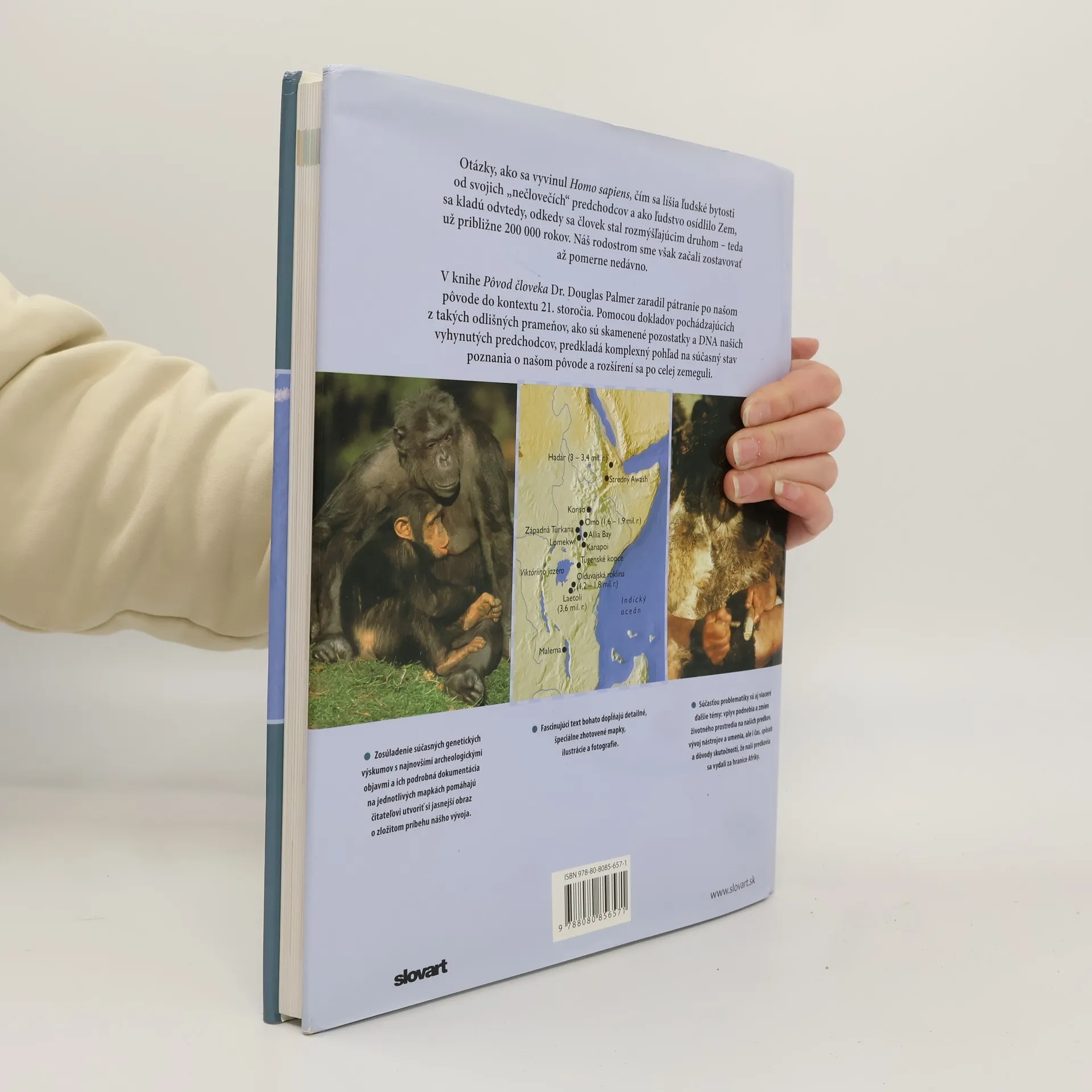 V knihe Pôvod človeka Dr. Douglas Palmer zaradil pátranie po našom pôvode do kontextu 21. storočia. Pomocou dokladov pochádzajúcich z takých odlišných prameňov, ako sú skamenené pozostatky a DNA našich vyhynutých predchodcov, predkladá komplexný pohľad na súčasný stav poznania o našom pôvode a rozšírení sa po celej zemeguli.