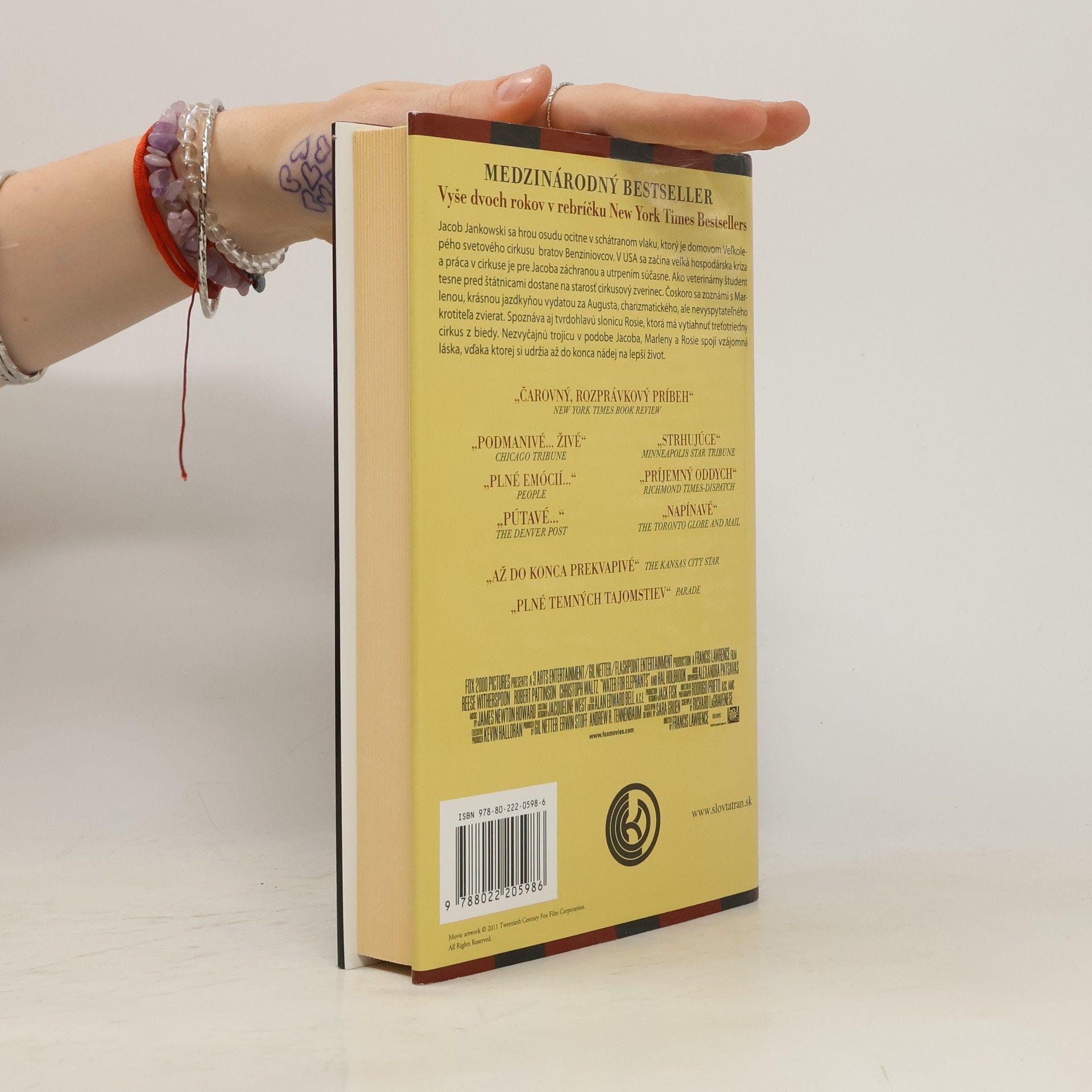 Deväťdesiatnik Jacob Jankowski sa vo svojich spomienkach vracia do mladosti, keď sa osudovo ocitol v ošumelom vlaku cirkusu bratov Benziniovcov. Tento svet plný čudákov, klaunov a vášne sa stal jeho domovom po tragédii, keď prišiel o rodičov a majetok. V čase hospodárskej krízy mu cirkus poskytol šancu na nový život, ktorý sa však rýchlo zmenil na boj o prežitie. Jacob sa zamiluje do Marlena, krásnej jazdkyne, ktorá sa do cirkusu dostala kvôli nesprávnemu mužovi, atraktívnemu krotiteľovi šeliem s temnou minulosťou. Stretnutie s Rosie, obrovskou slonicou, ktorá sa ukáže ako nevycvičiteľná, prehlbuje ich vzťah. Jacob a Marlena sa o ňu starajú s láskou a tušia, že Rosie skrýva viac, než sa zdá. Ich neobyčajná trojica je spojená vzájomnou láskou, ktorá im dáva nádej na prežitie. Tento dojímavý román s napínavým príbehom a nezabudnuteľnými postavami prenáša čitateľa do sveta zázrakov. Rukopis bol pôvodne odmietnutý viacerými vydavateľstvami, no po vydaní vyvolal obrovský ohlas a stal sa románom roka 2006 a 2007, pričom sa doteraz drží na vrchole bestsellerov.