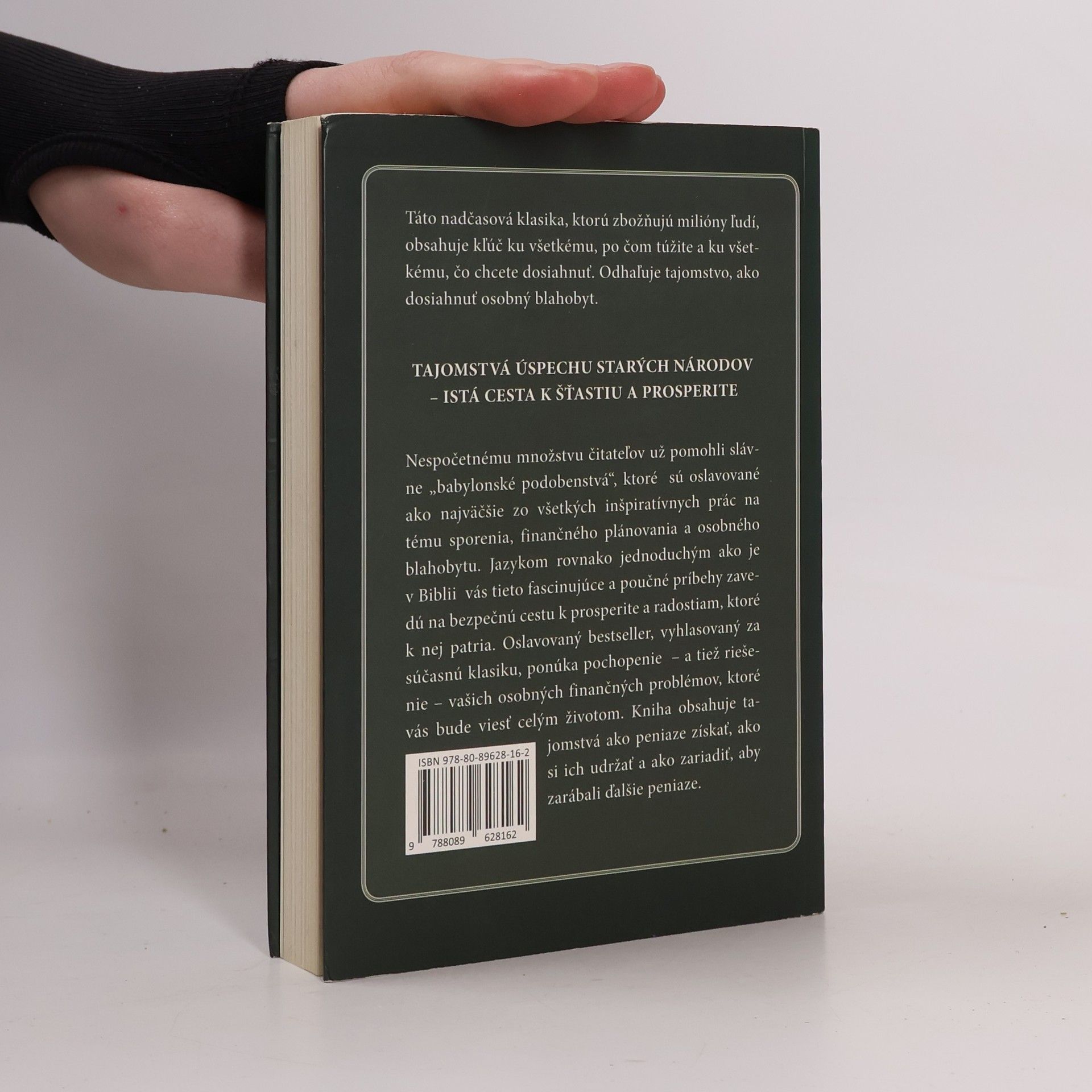 Táto nadčasová klasika, ktorú zbožňujú milióny ľudí, obsahuje kľúč ku všetkému, po čom túžite a ku všetkému, čo chcete dosiahnuť. Odhaľuje tajomstvo, ako dosiahnuť osobný blahobyt. Nespočetnému množstvu čitateľov už pomohli slávne „babylonské podobenstvá“, ktoré sú oslavované ako najväčšie zo všetkých inšpiratívnych prác na tému sporenia, finančného plánovania a osobného blahobytu. Jazykom rovnako jednoduchým ako je v Biblii vás tieto fascinujúce a poučné príbehy zavedú na bezpečnú cestu k prosperite a radostiam, ktoré k nej patria. Oslavovaný bestseller, vyhlasovaný za súčasnú klasiku, ponúka pochopenie – a tiež riešenie – vašich osobných finančných problémov, ktoré vás bude viesť celým životom. Kniha obsahuje tajomstvá ako peniaze získať, ako si ich udržať a ako zariadiť, aby zarábali ďalšie peniaze.