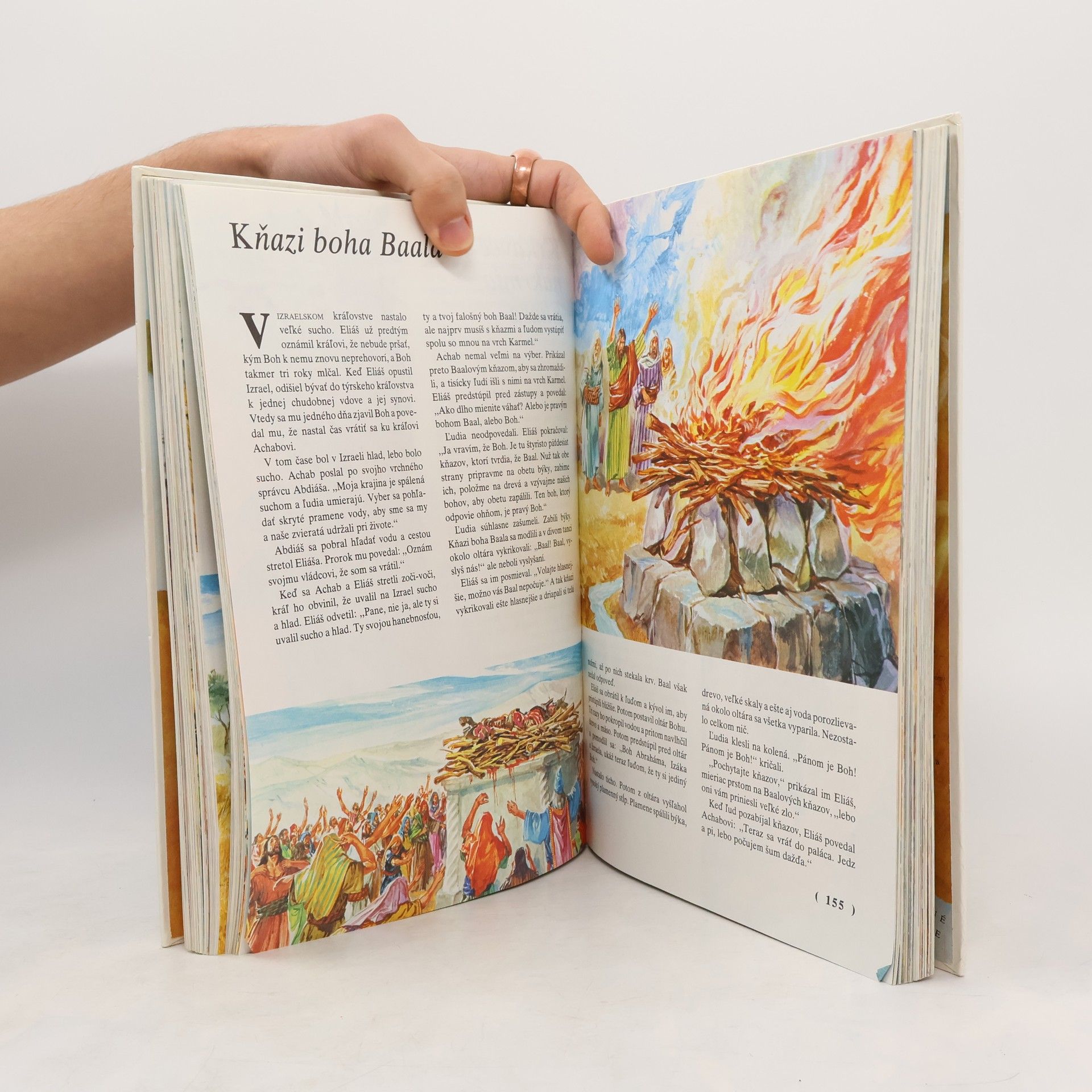 Bohato ilustrované príbehy Starého i Nového zákona, prerozprávané do zrozumiteľnej podoby pre dnešné deti. Kapitoly: Joatam a Abimelech, Jefteho slávnostný sľub, Samson a Filištínci, Rút a Noemi, Rút a Booz, Samuel vyprosený od pána, Samuel a Saul, Saula zvolia za kráľa, Jonatán poruší prísahu, Saul neuposlúchne Boha, Dávid, Izajov syn, Dávid a Goliáš, Saulova žiarlivosť, Dávid sa ožení so Saulovou dcérou, Dávid a Jonatán, Dávid a Abigail, Dávid kráľom, Dávid a Betsabe, Dávid a Absolón, Dávidova smrť, Šalamún kráľom, Šalamúnov súd, Stavba chrámu, Návšteva kráľovnej zo Sáby, Krkavce nakŕmia Eliáša, Kňazi boha Baala, Tichý, slabý hlas, Nabotova vinica, Odchod Eliáša a Elizea, Elizeus uzdraví Námana, Pomazanie Jehua, Joasova vláda, Elizeova smrž, Josiáš a Izaiášove proroctvá, Pád a zničenie Jeruzaléma, Židovskí zajatci v Babylone, Kráľov sen, Zlatá socha, Sidrach, Misach a Abdenego, Vyloženie a splnenie sna, Nápis na stene, Daniel v jame s levmi, Znovupostavenie chrámu, Znovupostavenie hradieb, Estera, Boh skúša Jóba, Jonáš a veľryba. Prvé vydanie. Cena knihy v čase vydania: 150.- Kčs.