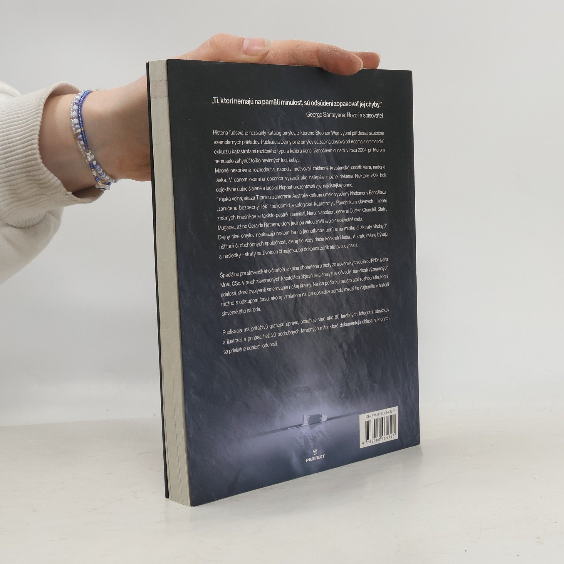 História ľudstva je rozsiahly katalóg omylov, z ktorého Stephen Weir vybral päťdesiat skutočne exemplárnych príkladov. Táto publikácia sa začína doslova od Adama a dramatickú exkurziu katastrofami rozličného typu a kalibru končí vianočným cunami v roku 2004, pri ktorom nemuselo zahynúť toľko nevinných ľudí, keby... Trójska vojna, skaza Titanicu, umelo vyvolaný hladomor v Bengálsku, "zaručene bezpečný liek" thalidomid, ekologické katastrofy... Panoptikum slávnych i menej známych hriešnikov je takisto pestré: Hannibal, Nero, Napoleon, Churchill, Stalin, Mugabe... až po Geralda Ratnera, ktorý jedinou vetou zničil svoje celoživotné dielo. Špeciálne pre slovenského čitateľa je kniha obohatená o texty zo slovenských dejín od PhDr. Ivana Mrvu, CSc. V troch záverečných kapitolách objasňuje a analyzuje dôvody i súvislosti významných udalostí, ktoré ovplyvnili smerovanie našej krajiny. Na ich počiatku takisto stáli rozhodnutia, ktoré možno s odstupom času, ako aj vzhľadom na ich dôsledky zaradiť medzi tie najhoršie v histórii slovenského národa. Publikácia má príťažlivú grafickú úpravu, obsahuje viac ako 60 farebných fotografií, obrázkov a ilustrácií a prináša tiež 20 podrobných farebných máp, ktoré dokumentujú oblasti, v ktorých sa príslušné udalosti odohrali.