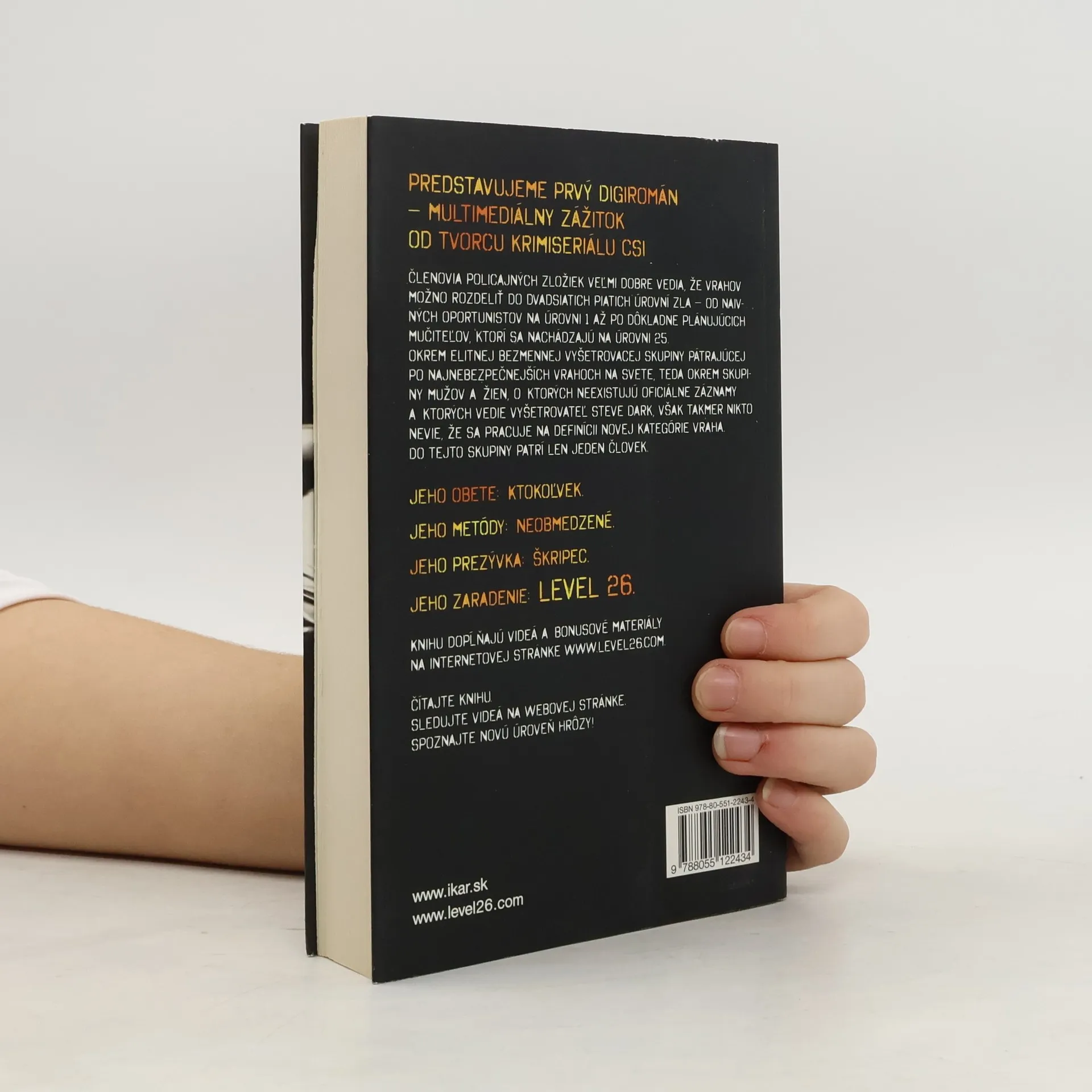 Členovia policajných zložiek veľmi dobre vedia, že vrahov možno rozdeliť do dvadsiatich piatich úrovní zla – od naivných oportunistov na úrovni 1 až po dôkladne plánujúcich mučiteľov, ktorí sa nachádzajú na úrovni 25. Okrem elitnej bezmennej vyšetrovacej skupiny pátrajúcej po najnebezpečnejších vrahoch na svete, teda okrem skupiny mužov a žien, o ktorých neexistujú oficiálne záznamy a ktorých vedie vyšetrovateľ Steve Dark, však takmer nikto nevie, že sa pracuje na definícii novej kategórie vraha. Do tejto skupiny patrí len jeden človek. Jeho obete: Ktokoľvek. Jeho metódy: Neobmedzené. Jeho prezývka: Škripec. Jeho zaradenie: LEVEL 26.