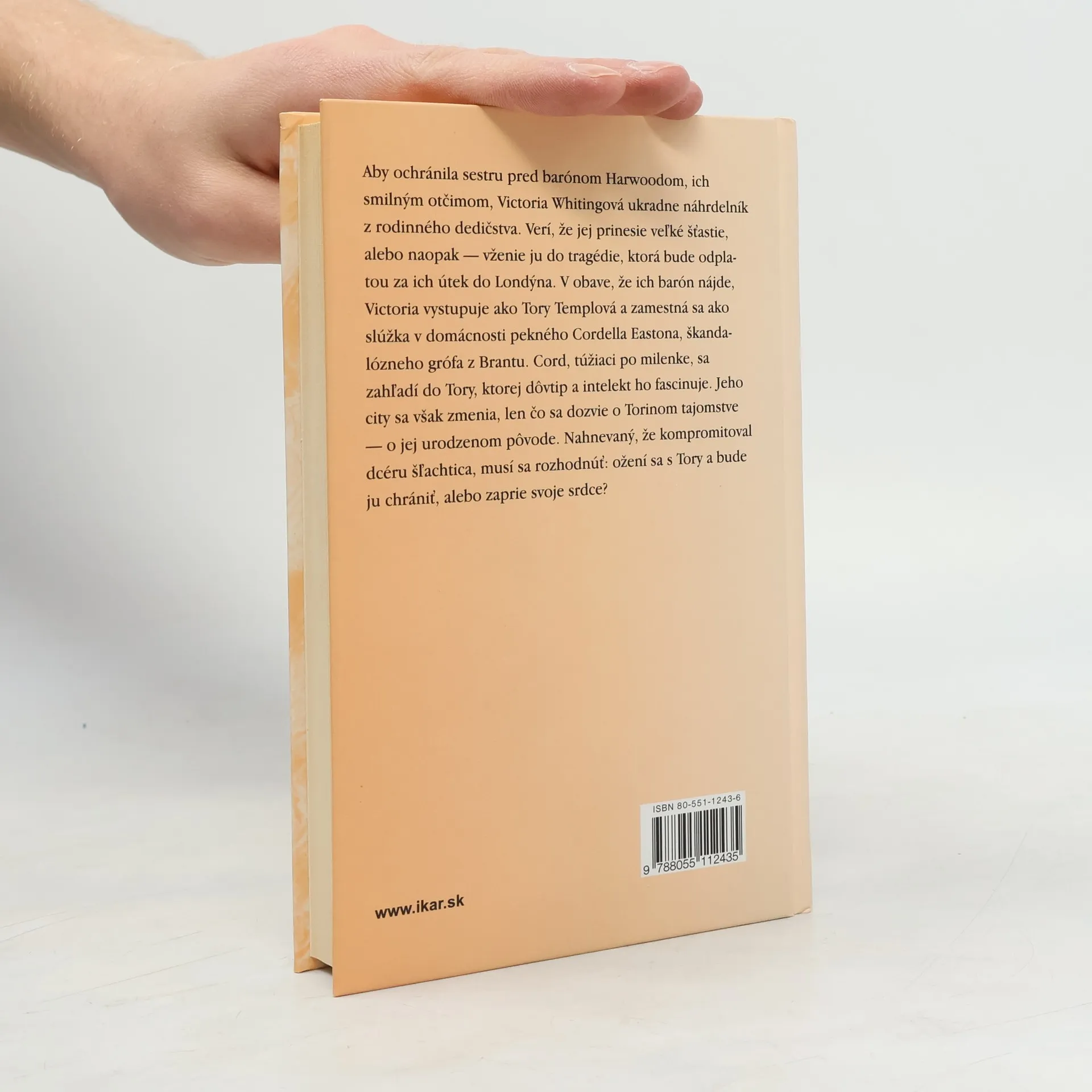 Aby ochránila sestru pred barónom Harwoodom, ich smilným otčimom, Victoria Whitingová ukradne náhrdelník z rodinného dedičstva. Verí, že jej prinesie veľké šťastie, alebo naopak – vženie ju do tragédie, ktorá bude odplatou za ich útek do Londýna. V obave, že ich barón nájde, Victoria vystupuje ako Tory Templová a zamestná sa ako slúžka v domácnosti pekného Cordella Eastona, škandalózneho grófa z Brantu. Cord, túžiaci po milenke, sa zahľadí do Tory, ktorej dôvtip a intelekt ho fascinuje. Jeho city sa však zmenia, len čo sa dozvie o Torinom tajomstve – jej urodzenom pôvode. Nahnevaný, že kompromitoval dcéru šľachtica, musí sa rozhodnúť: ožení sa s Tory a bude ju chrániť, alebo zaprie svoje srdce?