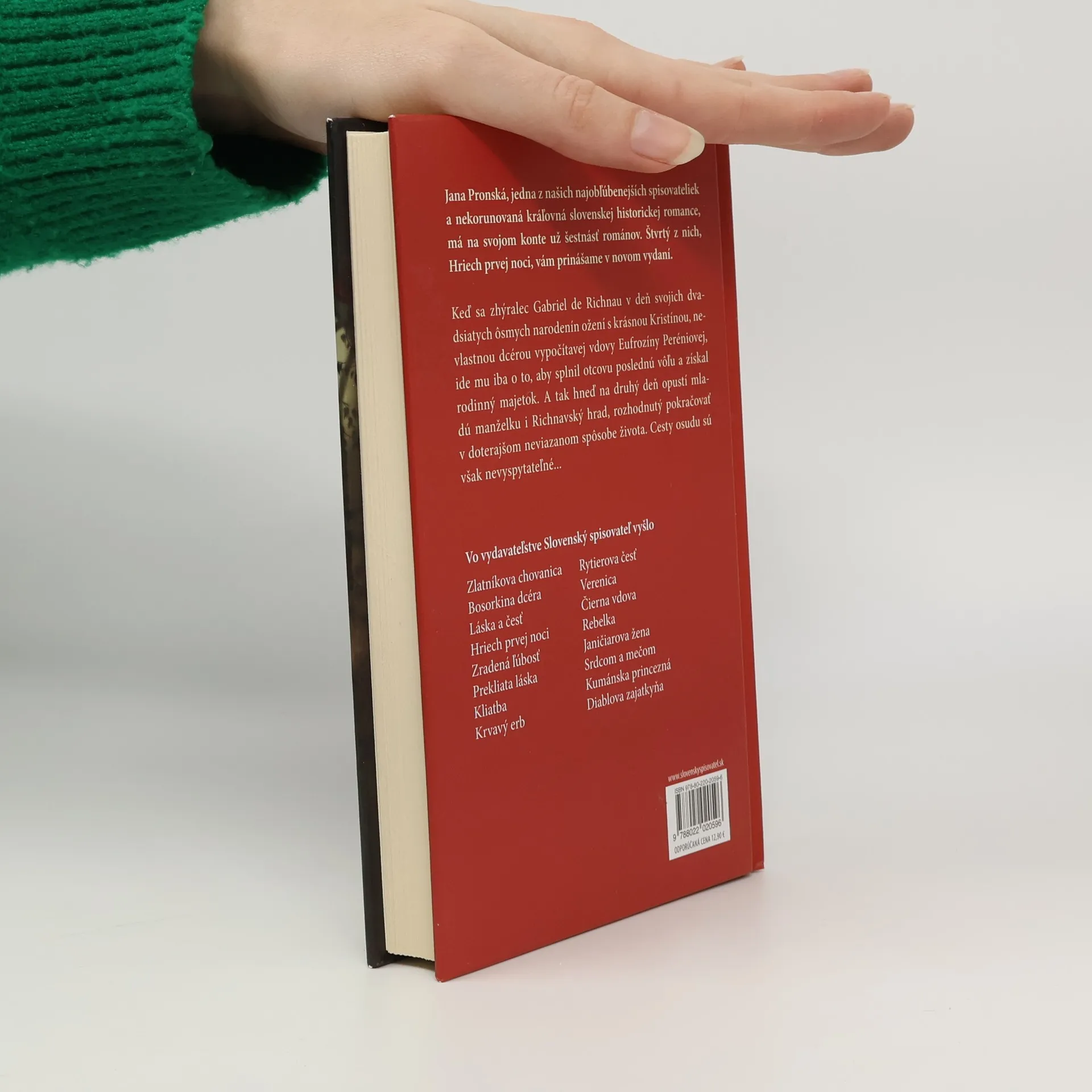 Jana Pronská, jedna z našich najobľúbenejších spisovateliek a nekorunovaná kráľovná slovenskej historickej romance, má na svojom konte už šestnásť románov. Štvrtý z nich, Hriech prvej noci, vám prinášame v novom vydaní. Keď sa zhýralec Gabriel de Richnau v deň svojich dvadsiatych ôsmych narodenín ožení s krásnou Kristínou, nevlastnou dcérou vypočítavej vdovy Eufrozíny Peréniovej, ide mu iba o to, aby splnil otcovu poslednú vôľu a získal rodinný majetok. A tak hneď na druhý deň opustí mladú manželku i Richnavský hrad, rozhodnutý pokračovať v doterajšom neviazanom spôsobe života. Cesty osudu sú však nevyspytateľné...