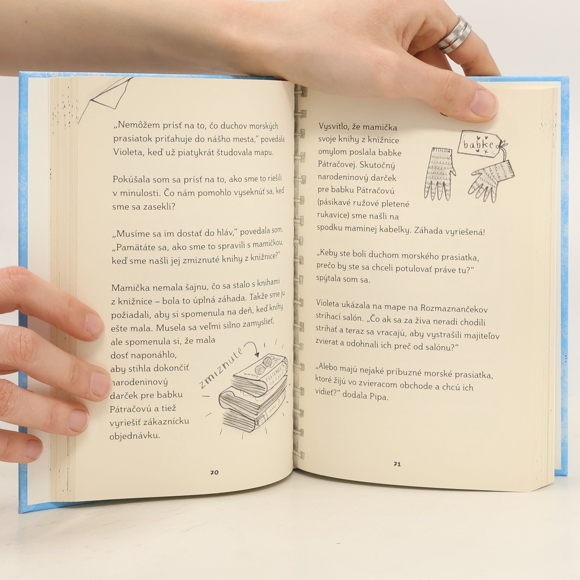 Mirelka Pátračová je totálne úžasná detektívka. Má deväť rokov a zapisuje si do tajného denníka dôležité informácie, aby nestratila kľúčové stopy. Spolu s kamarátkami Pipou a Violetou tvoria tím detektívnej kancelárie Tri pátračky a už vyriešili nejednu zamotanú záhadu. A keď ich triedna učiteľka, slečna Mrveničková, zbadá pobehovať po záhrade ducha svojho zbožňovaného morského prasiatka, akčná trojica má zrazu prípad, aký tu ešte nebol! Naozaj napadli mestečko Mláčkovce žiariaci duchovia morských prasiatok? Podarí sa ich odhaliť ešte pred začiatkom veľkej talentovej šou? Tri pátračky neodradia ani strašidelné okolnosti! Prvá kniha zo série plnej humoru, veselých obrázkov a praktických tipov pre mladých super detektívov!