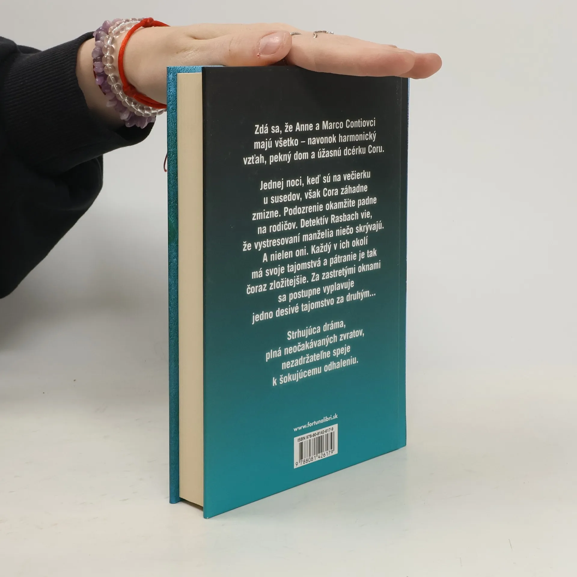 Zdá sa, že Anne a Marco Contiovci majú všetko – navonok harmonický vzťah, pekný dom a úžasnú dcérku Coru. Jednej noci, keď sú na večierku u susedov, však Cora záhadne zmizne. Podozrenie okamžite padne na rodičov. Detektív Rasbach vie, že vystresovaní manželia niečo skrývajú. A nielen oni. Každý v ich okolí má svoje tajomstvá a pátranie je tak čoraz zložitejšie. Za zastretými oknami sa postupne vyplavuje jedno desivé tajomstvo za druhým... Strhujúca dráma, plná neočakávaných zvratov, nezadržateľne speje k šokujúcemu odhaleniu.