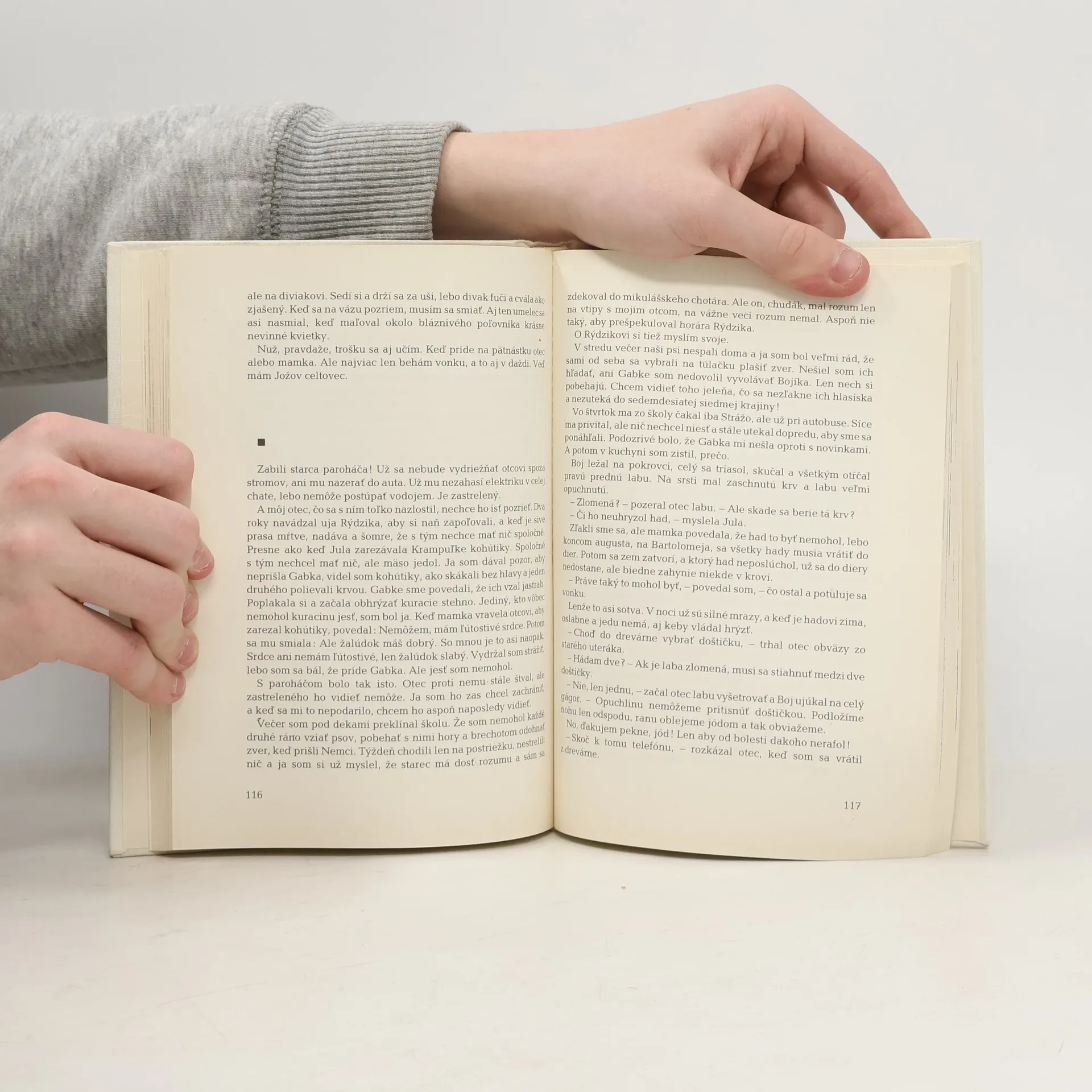 V horskej chate prežíva svoje detstvo hlavný hrdina knihy Ďuro. On sám prosto a čisto predstaví prekrásny svet horskej prírody i svojich najbližších. S veľkým obdivom rozpráva o staršom bratovi Jožovi, mlčanlivom Vlkovi, s nehou o päťročnej sestričke Gabike, s láskou o rodičoch: o všetkých, s ktorými sa stretáva, vyslovuje sa s úprimnosťou a nepolapiteľnosťou chlapca, ktorému je zmysel pre česť a spravodlivosť prirodzený. Pohodu rodiny a radosť, s akou Ďuro prežíva svoju rodiacu sa lásku i lásku staršieho brata, z čista jasna pretne tragédia. Udalosť na ktorej nik nemôže nič zmeniť, je jednoducho previerkou, ktorá dokáže, že z chlapcov sa stávajú muži. 66-148-71