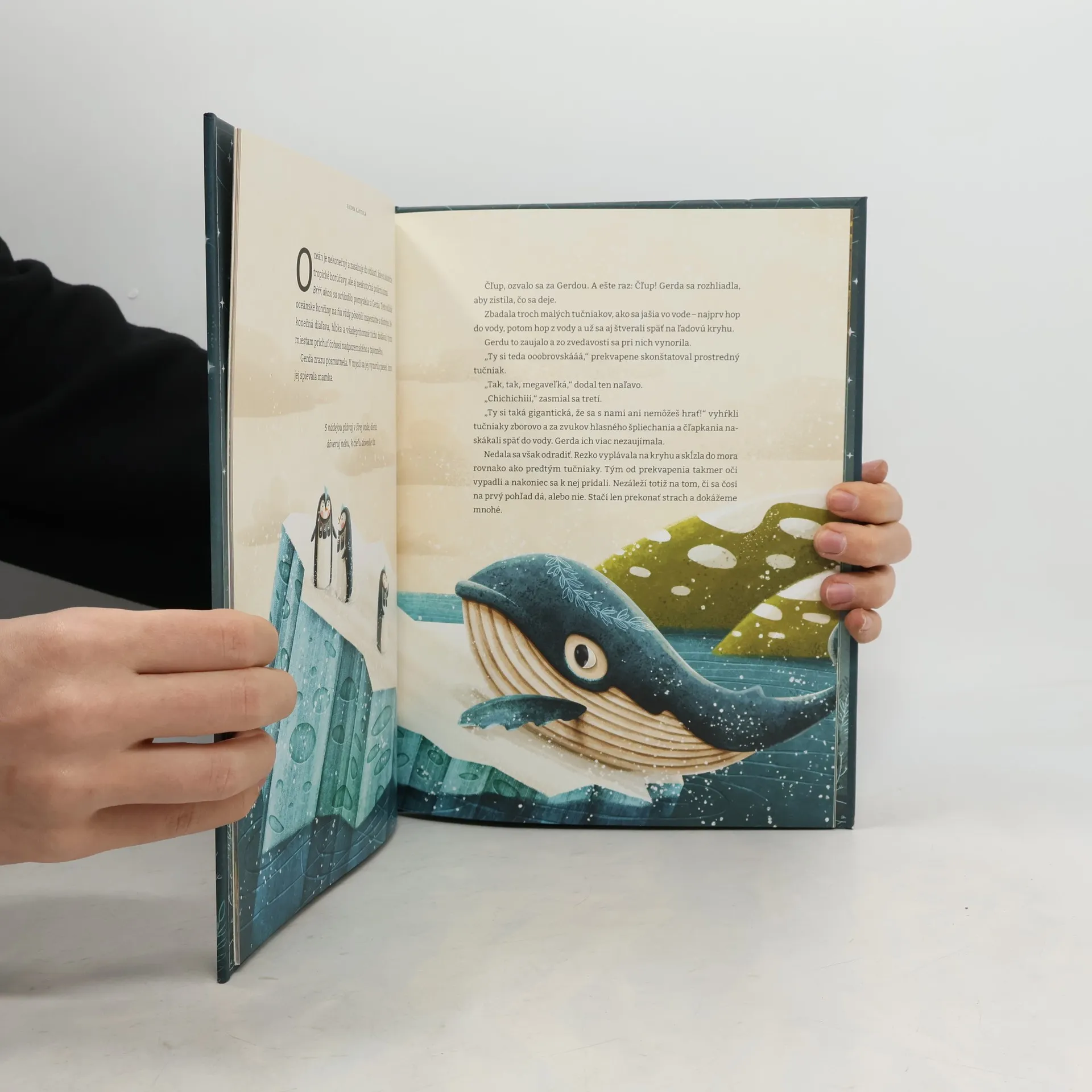 Malá Gerda je najšťastnejšia veľryba v oceáne. Raz sa však prihodí niečo nečakané a Gerda zostane úplne sama. Vyberie sa teda na plavbu šírym oceánom. Cestou stretáva veľa nových kamarátov: kosatky, tučniaky, čajky a chobotnice. Prezradia jej zaujímavosti o svojom živote, ale aj o oceáne, v ktorom všetci spolu žijú. Nájde nakoniec malá Gerda nový domov?