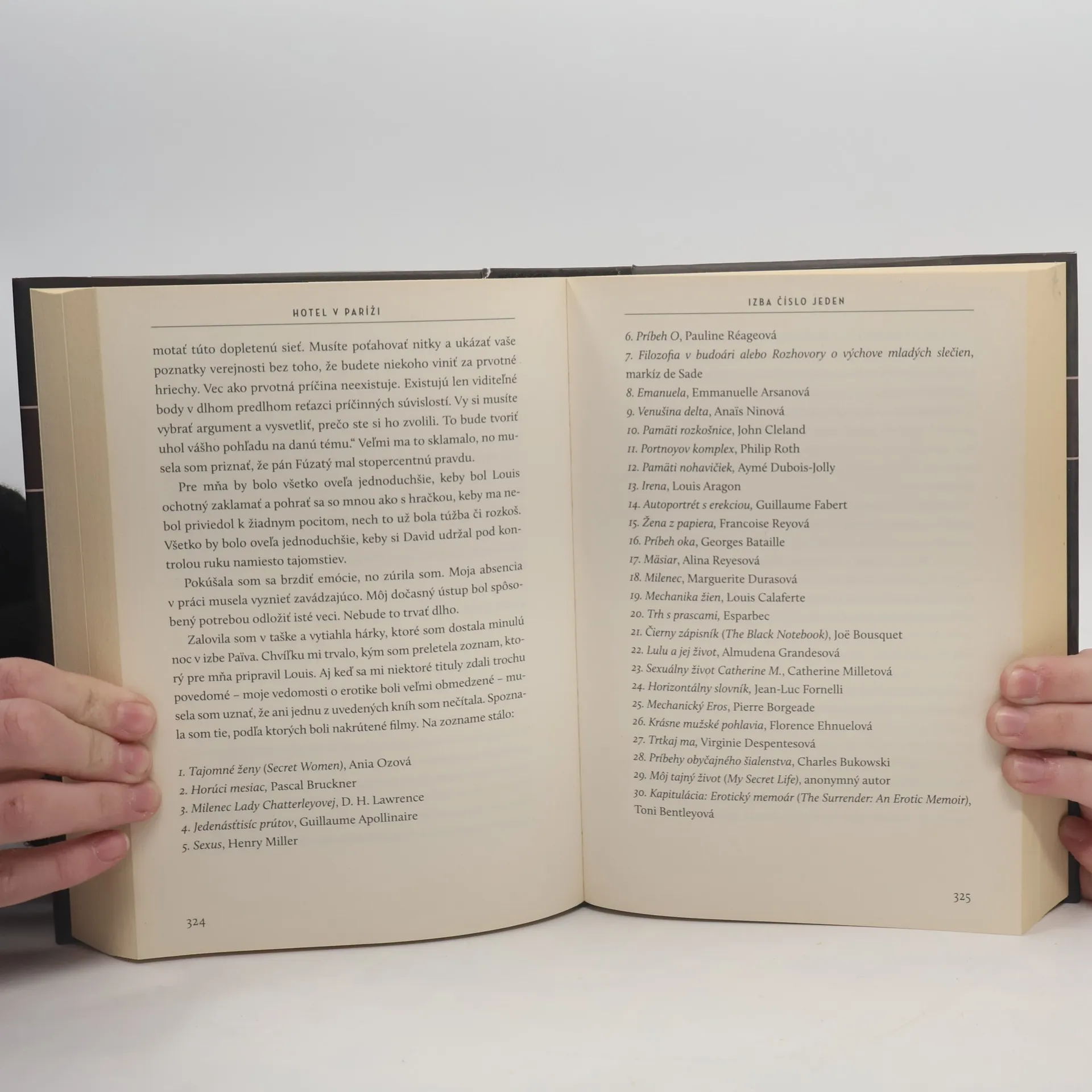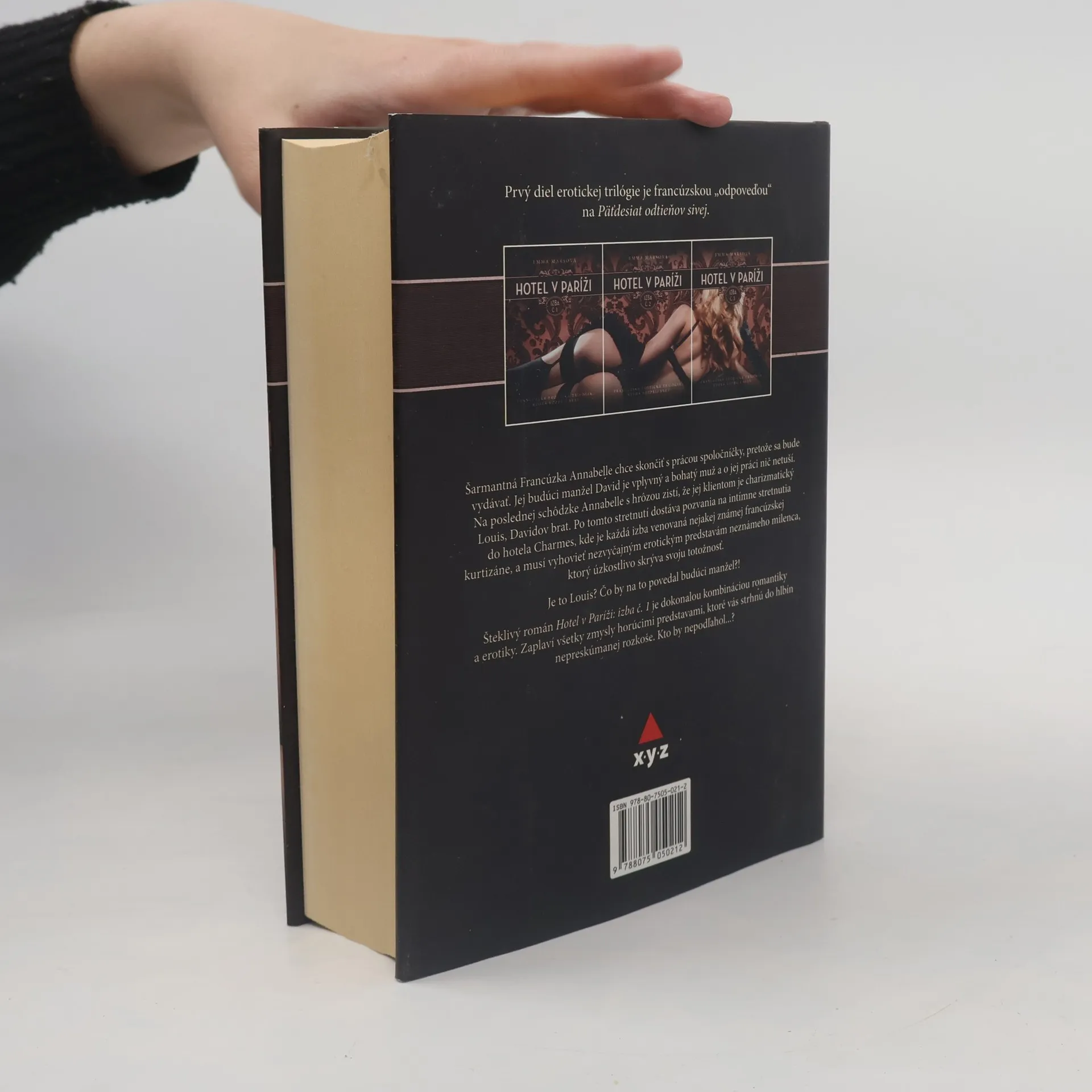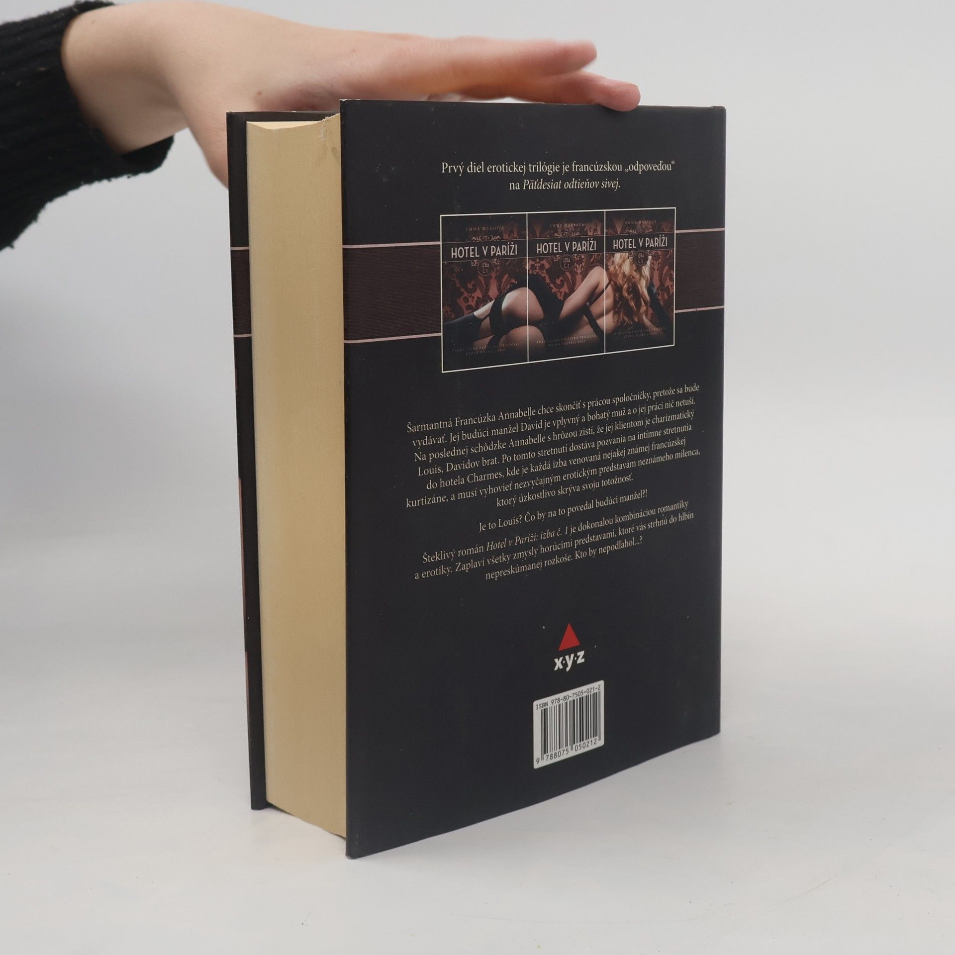 Prvý diel erotickej trilógie je francúzskou „odpoveďou“ na Fifty Shades (Päťdesiat odtieňov sivej). Šarmantná Francúzka Annabelle chce skončiť s prácou spoločníčky, pretože sa bude vydávať. Jej budúci manžel David je vplyvný a bohatý muž a o jej práci nič netuší. Na poslednej schôdzke Annabelle s hrôzou zistí, že jej klientom je charizmatický Louis, Davidov brat. Po tomto stretnutí dostáva pozvania na intímne stretnutia do hotela Charmes, kde je každá izba venovaná nejakej známej francúzskej kurtizáne, a musí splniť niektorú z erotických predstáv neznámeho milenca, ktorý úzkostlivo skrýva svoju totožnosť. Je to Louis? Čo by na to povedal budúci manžel?!