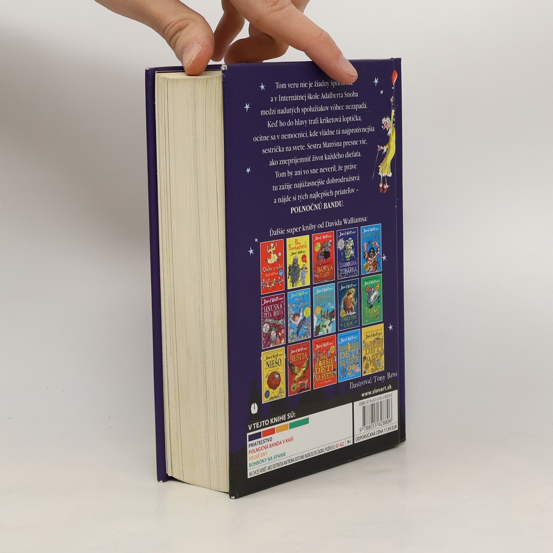 Svetoznámy britský komik a autor detských bestsellerov David Walliams pre vás tentoraz napísal niečo naozaj veľkolepé a, samozrejme, aj veľkolepo desivé. Neverili by ste, čo sa môže diať vo veľkej londýnskej nemocnici, keď Big Ben odbije polnoc... Tom sa po zásahu kriketovou loptičkou do hlavy ocitne v Nemocnici lorda Funta. Nielenže ho do nemocničnej izby vezie strašidelný nemocničný sluha, na detskom oddelení ho víta tá najprotivnejšia vrchná sestra, akú si len dokážete predstaviť. V nóbl internátnej škole sotva bude niekomu chýbať a, pravdupovediac, je rád, že odtiaľ aspoň na chvíľu vypadol. Jeho rodičia pracujú niekde na druhom konci sveta, takže sa v tejto nepríjemnej situácii ocitne úplne sám. Ani vo sne by neveril, že v tomto prostredí zažije najúžasnejšie a najbláznivejšie dobrodružstvá svojho života a nájde si skvelú partiu kamarátov – svoju polnočnú bandu.