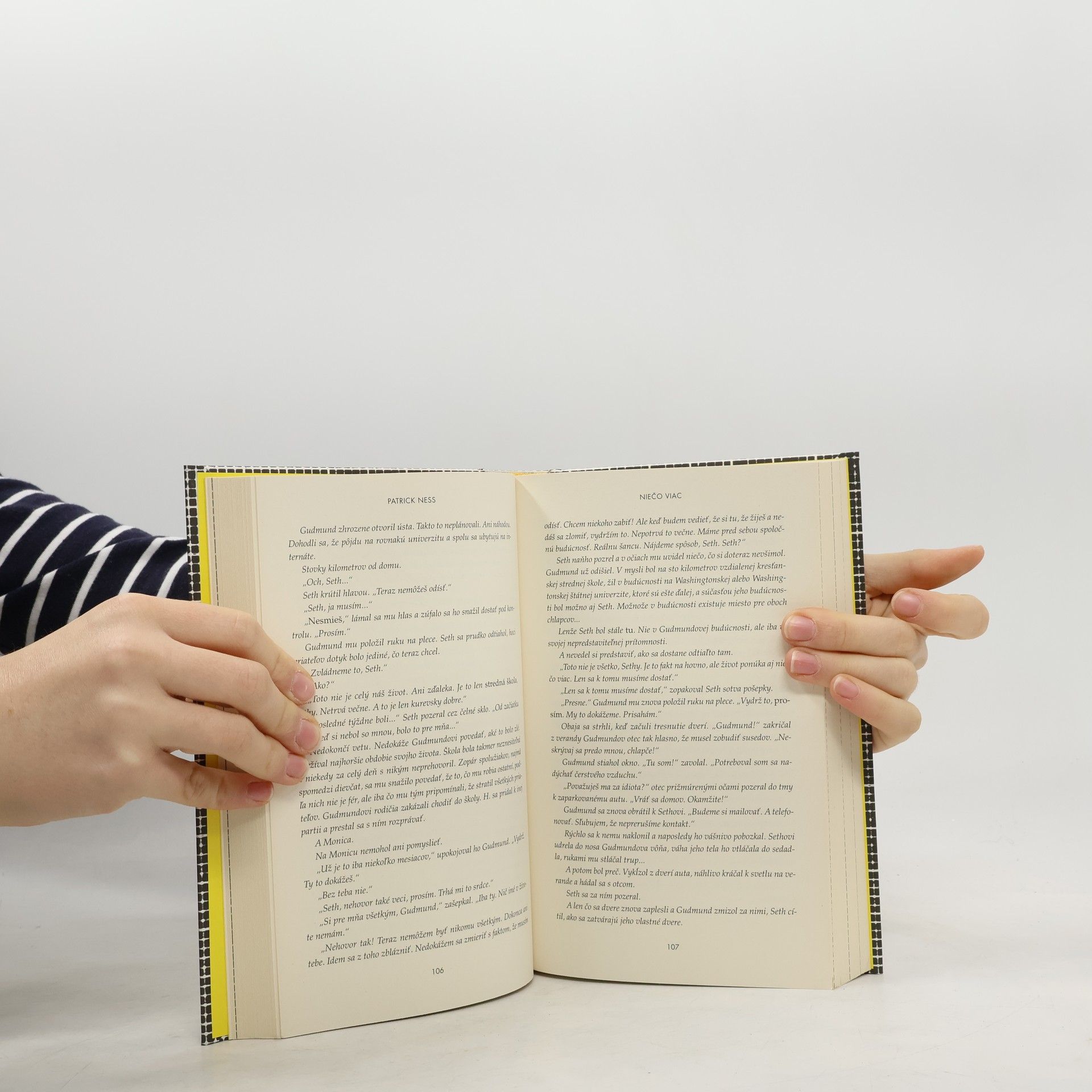 Patrick Ness patrí k najtalentovanejším autorom súčasnosti. V románe Niečo viac búra hranice medzi žánrami a otvára tínedžerskú literatúru všetkým vekovým kategóriám. Chlapec menom Seth zomiera. Život mu vezmú besniace morské vlny. No potom sa prebudí. Nahý, smädný a hladný. Ale živý. Ako je to možné? Spomína si na vlastnú smrť, ako sa mu trieštili kosti, ako si rozlámal lebku o kamenné morské dno. A ako to, že sa prebral? A kde sa vlastne nachádza? Ulice sú mu povedomé, ale všetko je opustené a zničené. Čo sa to deje? A prečo vždy keď zatvorí oči, podľahne spomienkam, ktoré mu pripadajú reálnejšie ako svet okolo. Čo je skutočné? Seth hľadá odpovede a dúfa, že tu nie je sám, že toto predsa len nebude jeho osobné peklo... A čoho sa najviac desí? Že tu je ešte niečo viac...