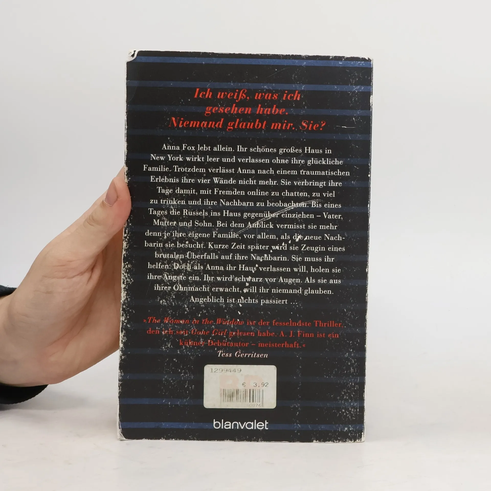Der internationale Bestseller: von 0 auf Platz 1 der New York Times-Bestsellerliste und von 0 auf Platz 2 der Sunday Times-Bestsellerliste in England!Die Blockbuster-Verfilmung des SPIEGEL-Bestsellers auf Netflix: mit Amy Adams, Julianne Moore und Gary Oldman in den Hauptrollen! »Der fesselndste Thriller, den ich seit 'Gone Girl' gelesen habe. A. J. Finn ist ein kühner Debütautor – meisterhaft.« Tess GerritsenAnna Fox lebt allein. Ihr schönes großes Haus in New York wirkt leer. Trotzdem verlässt sie nach einem traumatischen Erlebnis ihre vier Wände nicht mehr. Anna verbringt ihre Tage damit, mit Fremden online zu chatten, zu viel zu trinken – und ihre Nachbarn durchs Fenster zu beobachten. Bis eines Tages die Russels ins Haus gegenüber einziehen – Vater, Mutter und Sohn. Bei dem Anblick vermisst Anna mehr denn je ihr früheres Leben, vor allem, als die neue Nachbarin sie besucht. Kurze Zeit später wird sie Zeugin eines brutalen Überfalls. Sie will helfen. Doch sie traut sich nach wie vor nicht, das Haus zu verlassen. Die Panik holt sie ein. Ihr wird schwarz vor Augen. Als sie aus ihrer Ohnmacht erwacht, will ihr niemand glauben. Angeblich ist nichts passiert ...