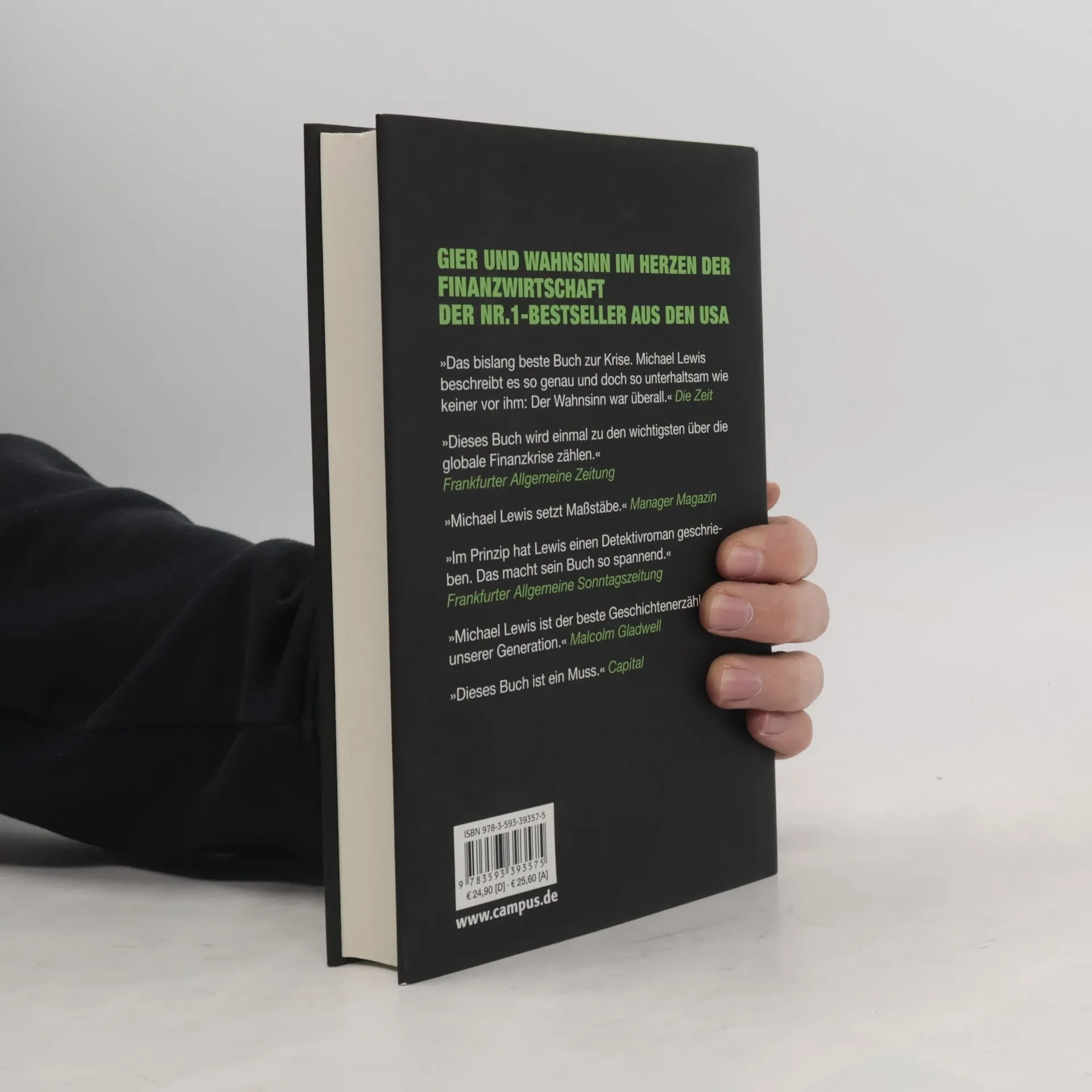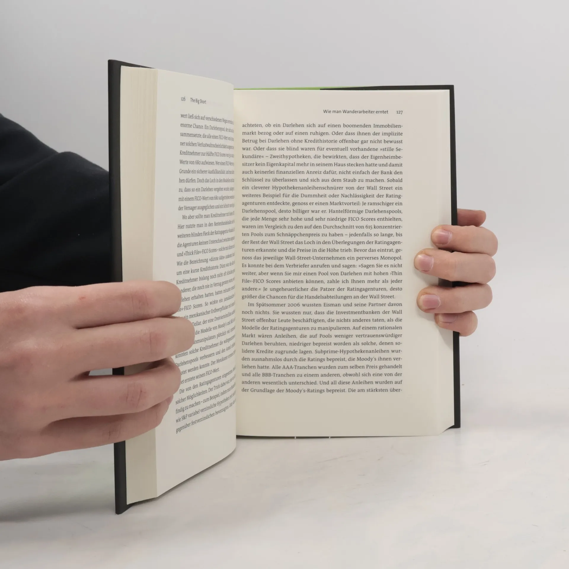 „The Big Short“ erzählt von der Erfindung einer monströsen Geldmaschine: Ein paar Hedgefond-Manager sehen das katastrophale Platzen der amerikanischen Immobilienblase nicht nur voraus, sondern sie wetten sogar im ganz großen Stil darauf. Den Kollaps des Systems befördern sie unter anderem mittels des sogenannten „shortings“, Leerverkäufen von Aktien großer Investmentbanken. Doch zu jeder Wette gehört auf der anderen Seite auch einer, der sie hält. Lewis entlarvt anhand seiner Protagonisten ein System, das sich verselbständigt und mit moralischen Kategorien wie Habgier oder Maßlosigkeit längst nicht mehr zu fassen ist. Der Zusammenbruch der Finanzmärkte, so lernen wir in diesem Buch, war ein kurzer Moment der Vernunft: Der Wahnsinn hatte sich in den Jahren davor abgespielt.