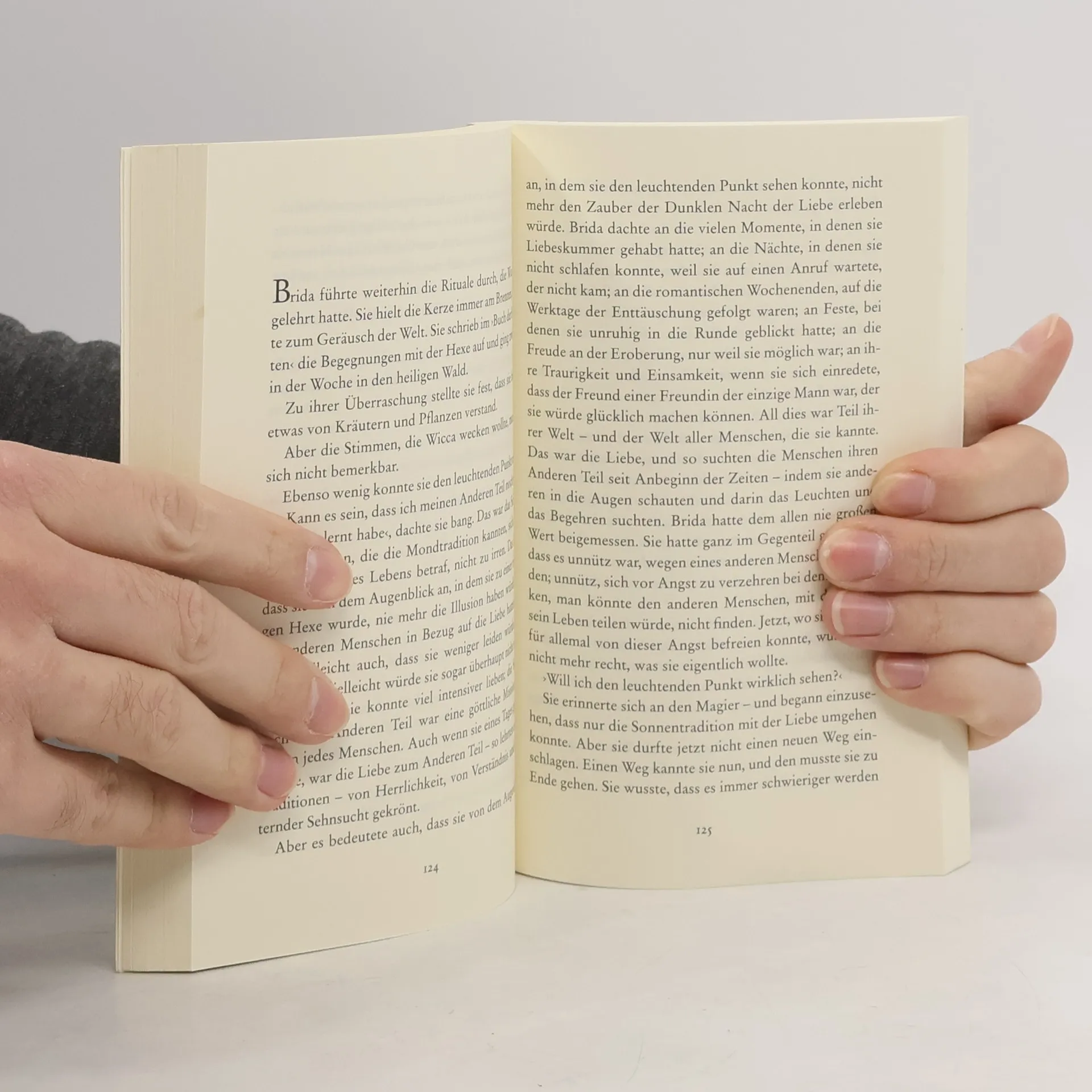 »Aber woran erkennt man den Mann oder die Frau seines Lebens?«, fragte Brida. »Du musst etwas riskieren«, war die Antwort. »Dabei wirst du oft scheitern, du wirst enttäuscht werden, desillusioniert. Aber wenn du nie aufhörst, nach deiner Liebe zu suchen, wirst du sie am Ende finden.«"