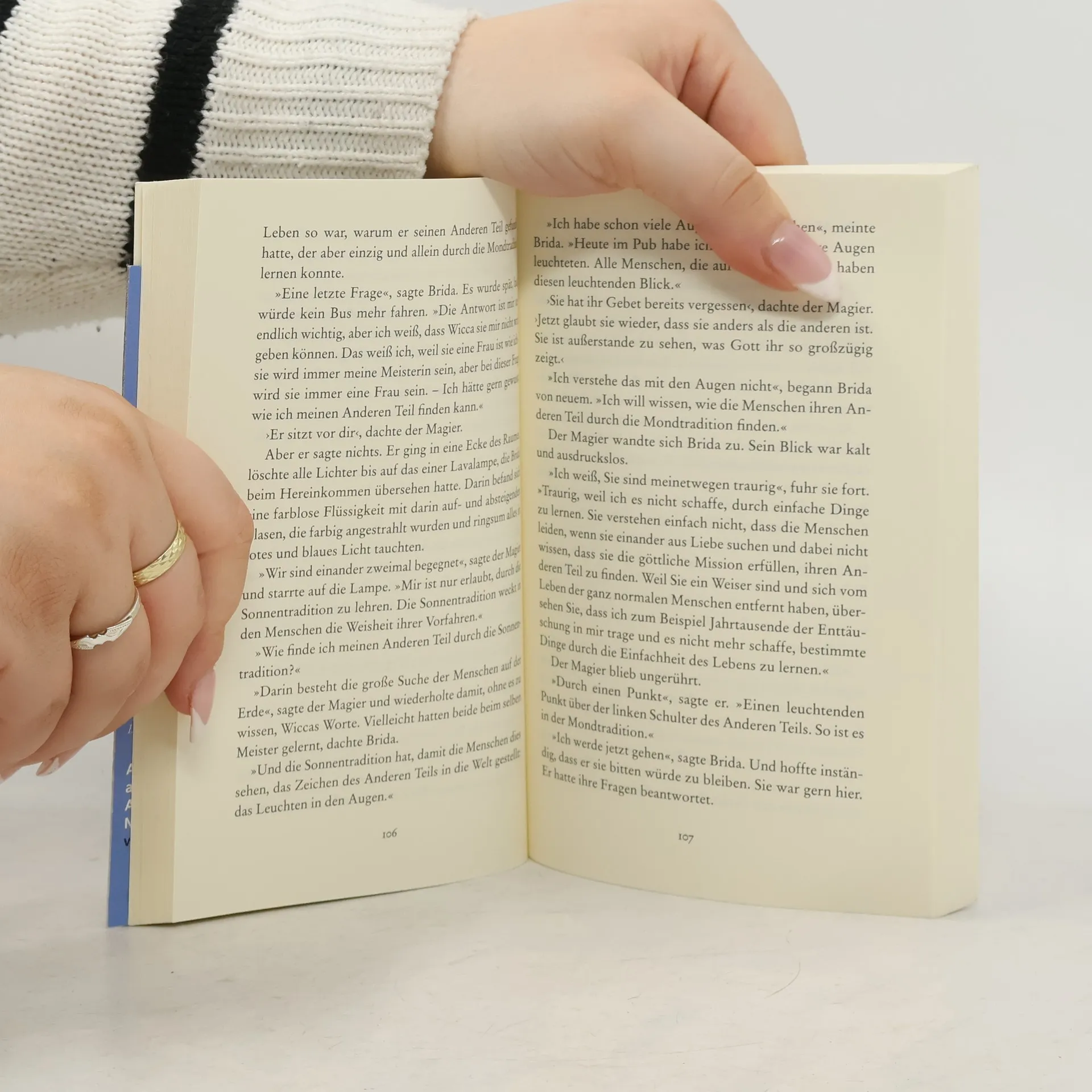 »Aber woran erkennt man den Mann oder die Frau seines Lebens?«, fragte Brida. »Du musst etwas riskieren«, war die Antwort. »Dabei wirst du oft scheitern, du wirst enttäuscht werden, desillusioniert. Aber wenn du nie aufhörst, nach deiner Liebe zu suchen, wirst du sie am Ende finden.«"