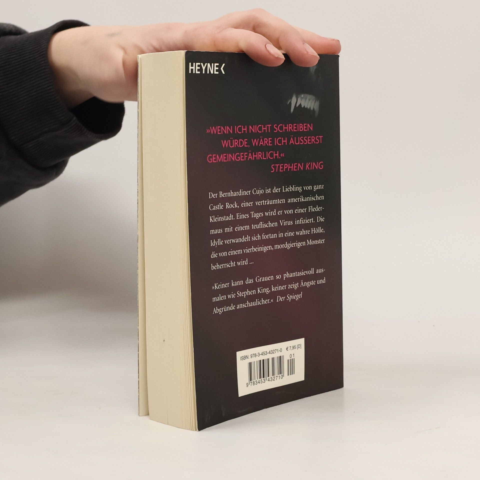 Zweiter Roman des Castle-Rock-Zyklus Der Bernhardiner Cujo ist der Liebling von ganz Castle Rock. Eines Tages wird er von einer Fledermaus mit einem teuflischen Virus infiziert. Die Kleinstadtidylle verwandelt sich fortan in eine Hölle, die von einem mordgierigen Monster beherrscht wird ...