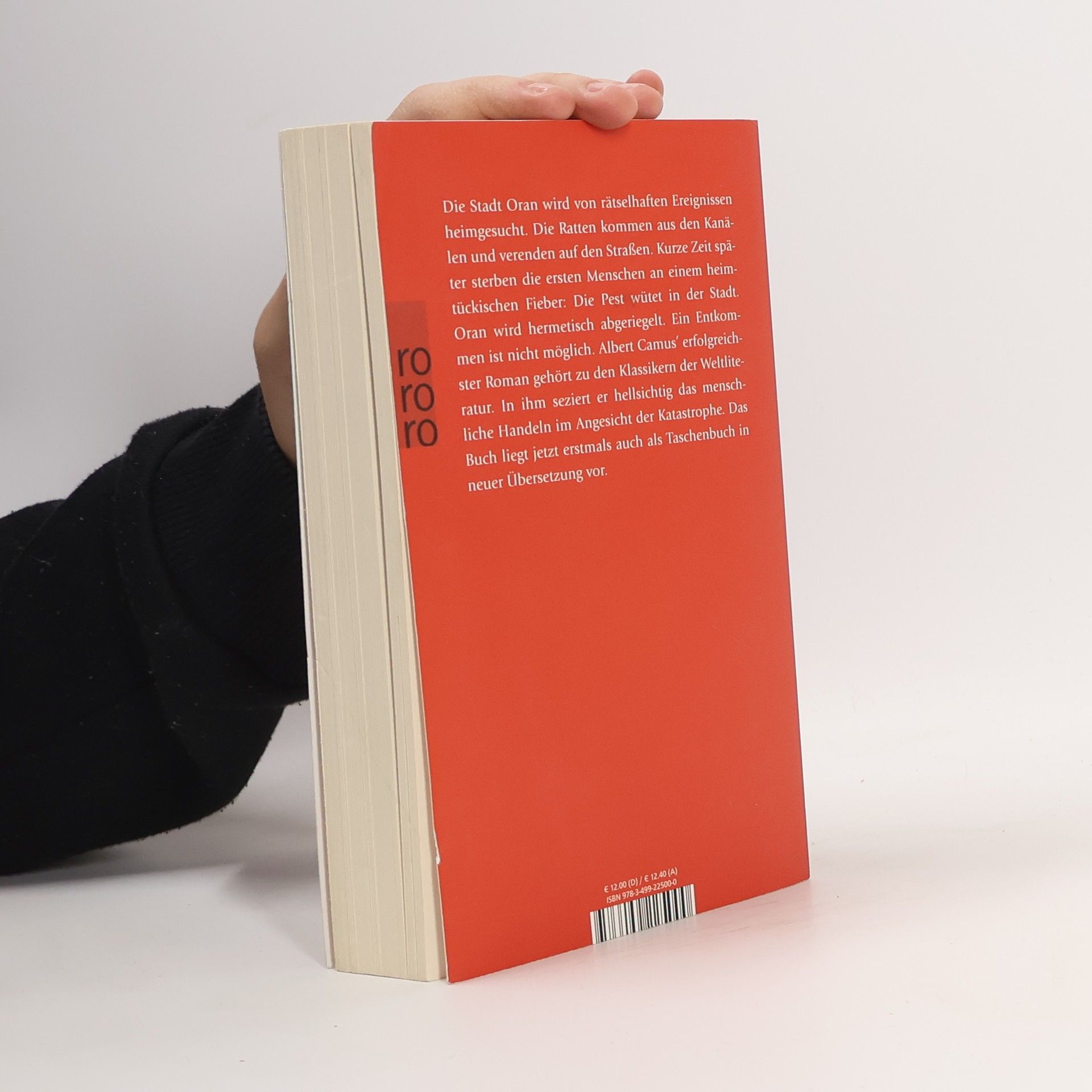«Camus irrt sich nicht in seinem Roman. Das Drama sind nicht die, die durch die Hintertür zum Friedhof entwischen – und für die die Angst vor der Pest endlich vorbei war –, sondern die Lebenden, die in ihren stickigen Schlafzimmern Blut schwitzten, ohne der belagerten Stadt entfliehen zu können.» (Gabriel García Márquez)Die Stadt Oran wird von rätselhaften Ereignissen heimgesucht. Die Ratten kommen aus den Kanälen und verenden auf den Straßen. Kurze Zeit später sterben die ersten Menschen an einem heimtückischen Fieber: Die Pest wütet in der Stadt. Oran wird hermetisch abgeriegelt. Ein Entkommen ist nicht möglich. Albert Camus’ erfolgreichster Roman gehört zu den Klassikern der Weltliteratur. In ihm seziert er hellsichtig das menschliche Handeln im Angesicht einer Katastrophe.
