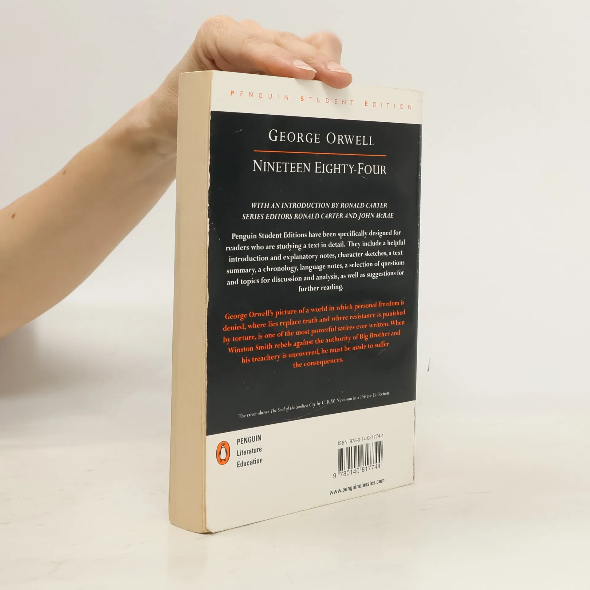 Hidden away in the Record Department of the sprawling Ministry of Truth, Winston Smith skilfully rewrites the past to suit the needs of the Party. Yet he inwardly rebels against the totalitarian world he lives in, which demands absolute obedience and controls him through the all-seeing telescreens and the watchful eye of Big Brother, symbolic head of the Party. In his longing for truth and liberty, Smith begins a secret love affair with a fellow-worker Julia, but soon discovers the true price of freedom is betrayal.