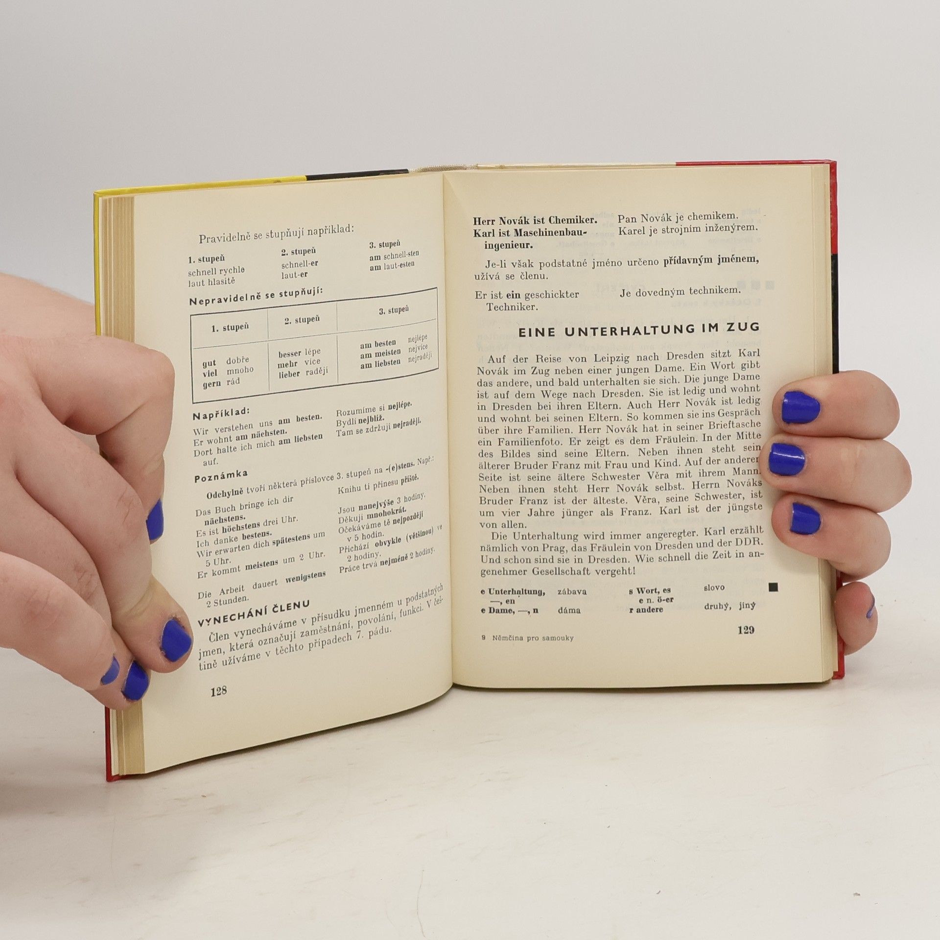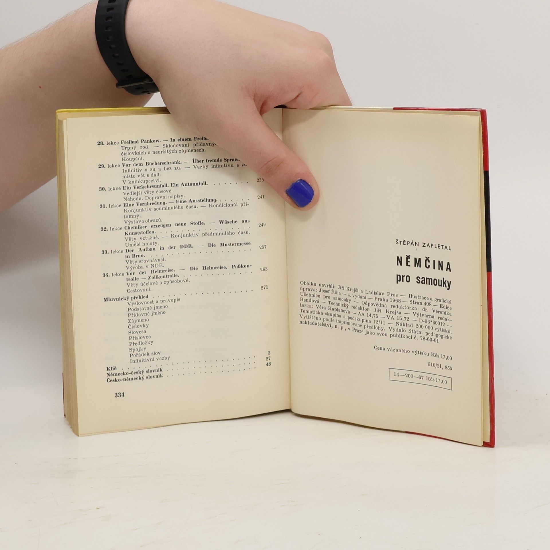 Tato učebnice Vás seznámí ve 34 lekcích bez pomoci učitele se základy německého jazyka a umožní vám dohovořit se v nejběžnějších situacích každodenního života. Učebnici doplňuje mluvnický přehled, abecední německo-český a česko-německý slovníček a v příloze Klíč ke cvičením. 4. vydání.