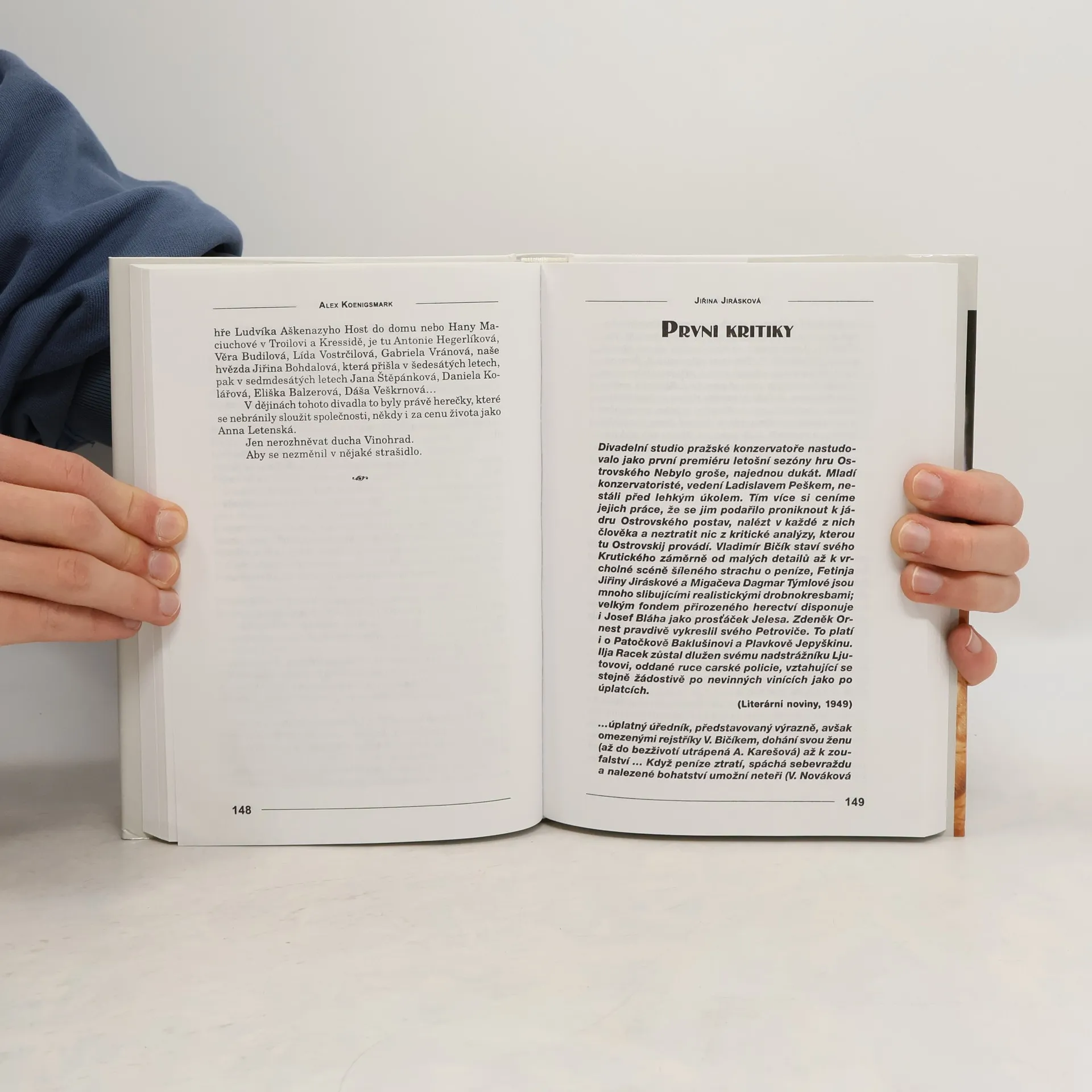 Divadlo a film - osobnosti Vzpomínky herečky Jiřiny Jiráskové, jak je zaznamenal dramatik Alex Koenigsmark. Z rozhovorů, které vedl dramatik Alex Koenigsmark s herečkou Jiřinou Jiráskovou, vznikla jedna z nejlepších vzpomínkových knih, které se v současné nadprodukci hereckých pamětí zrodily. Tato "herečka jednoho divadla", Divadla na Vinohradech, má vskutku o čem vyprávět. Činí tak s moudrým a lehce ironickým nadhledem. Vzpomínky jsou doplněny soupisem rolí.