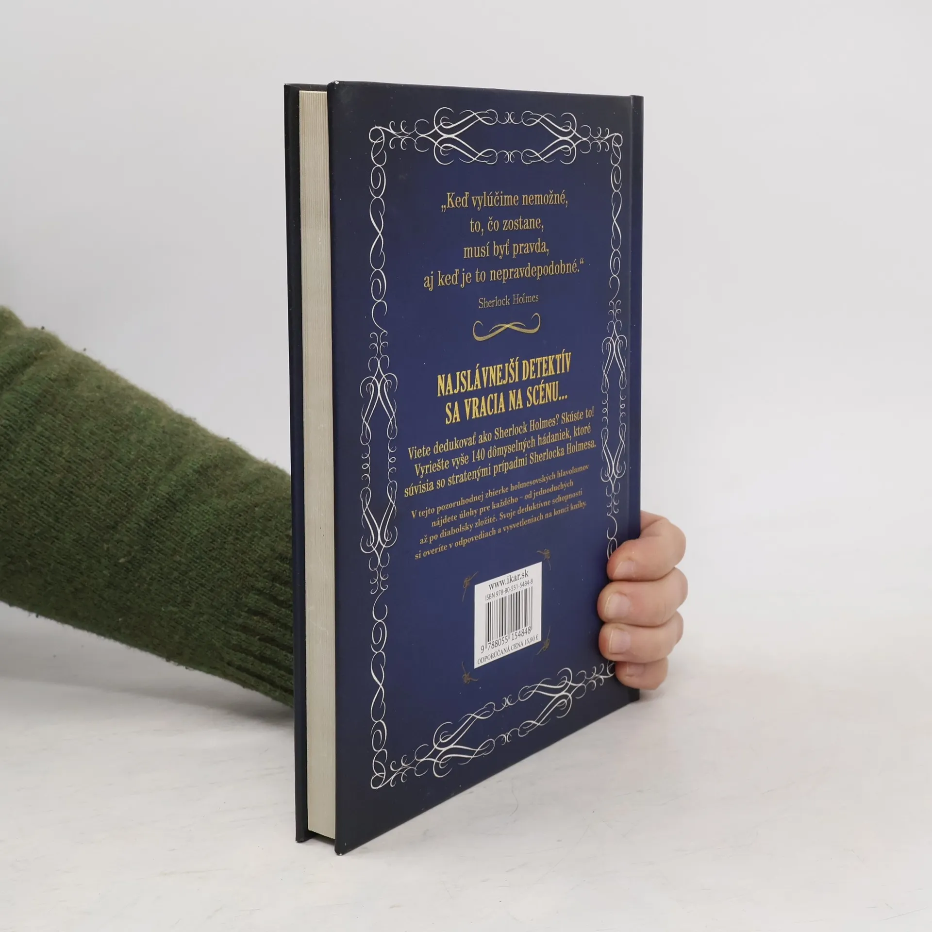Najslávnejší detektív sa vracia na scénu. Viete dedukovať ako Sherlock Holmes? Skúste to! Vyriešte vyše 140 dômyselných hádaniek, ktoré súvisia so stratenými prípadmi Sherlocka Holmesa. V tejto pozoruhodnej zbierke holmesovských hlavolamov nájdete úlohy pre každého – od jednoduchých až po diabolsky zložité. Svoje deduktívne schopnosti si overíte v odpovediach a vysvetleniach na konci knihy.