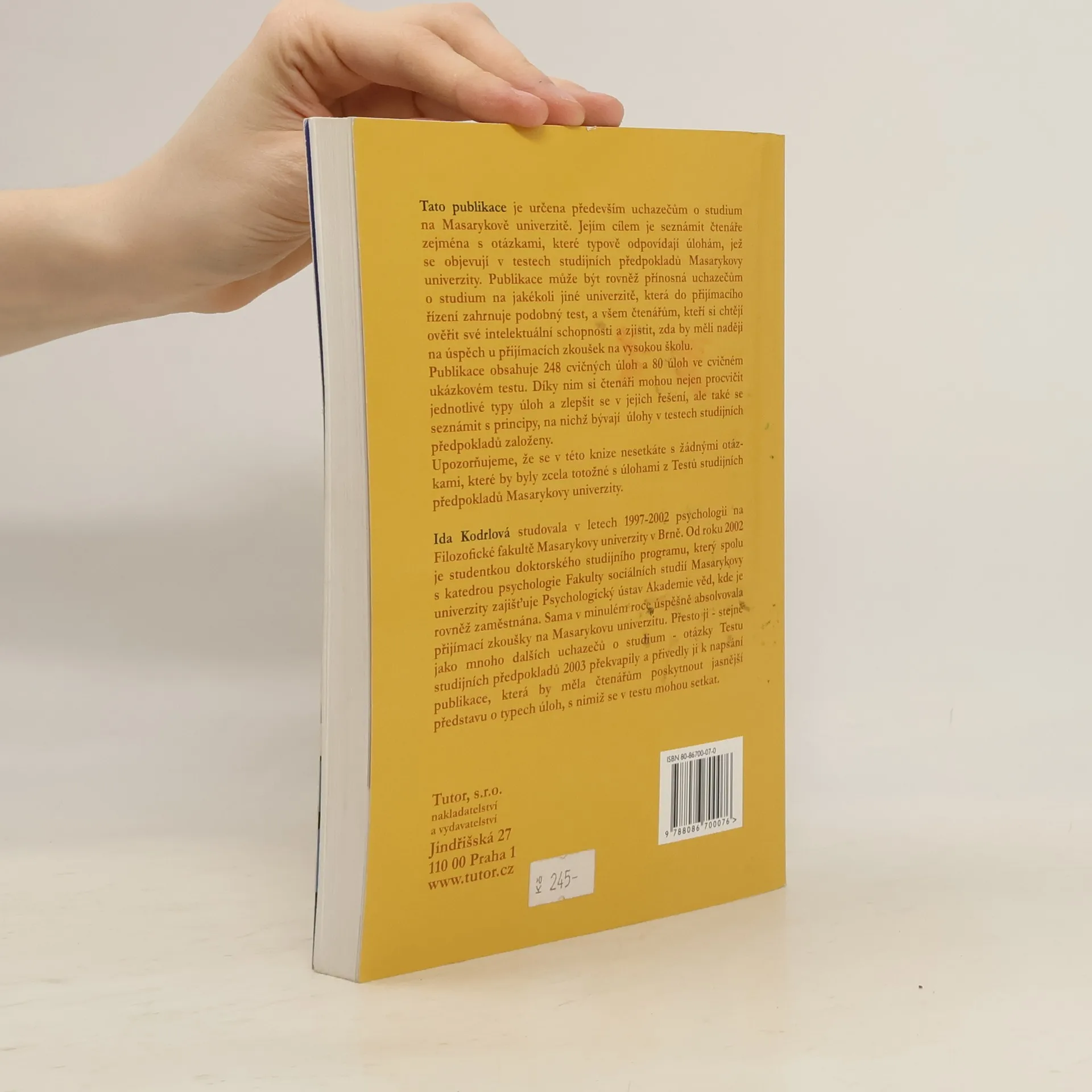 Tato publikace je určena především uchazečům o studium na Masarykově univerzitě. Vhodná je taktéž pro uchazeče o studium na jiné univerzitě, která do přijímacího řízení zahrnuje podobný test, a pro všechny čtenáře, kteří si chtějí ověřit své intelektuální schopnosti. Publikace obsahuje 248 cvičných úloh a 80 úloh v ukázkovém testu. Řešením těchto úloh si čtenář osvojí důležité principy, na nichž jsou testy studijních předpokladů založeny.