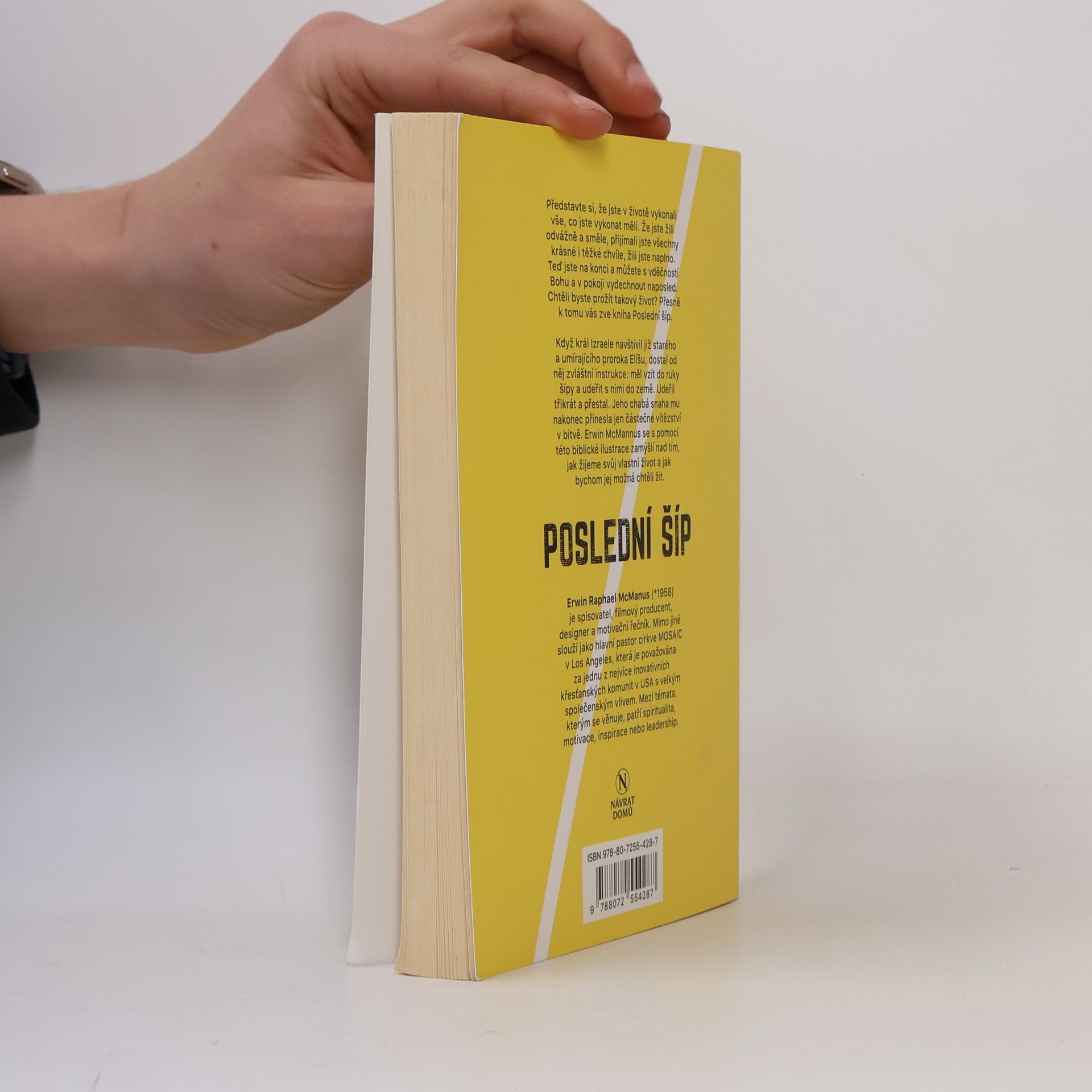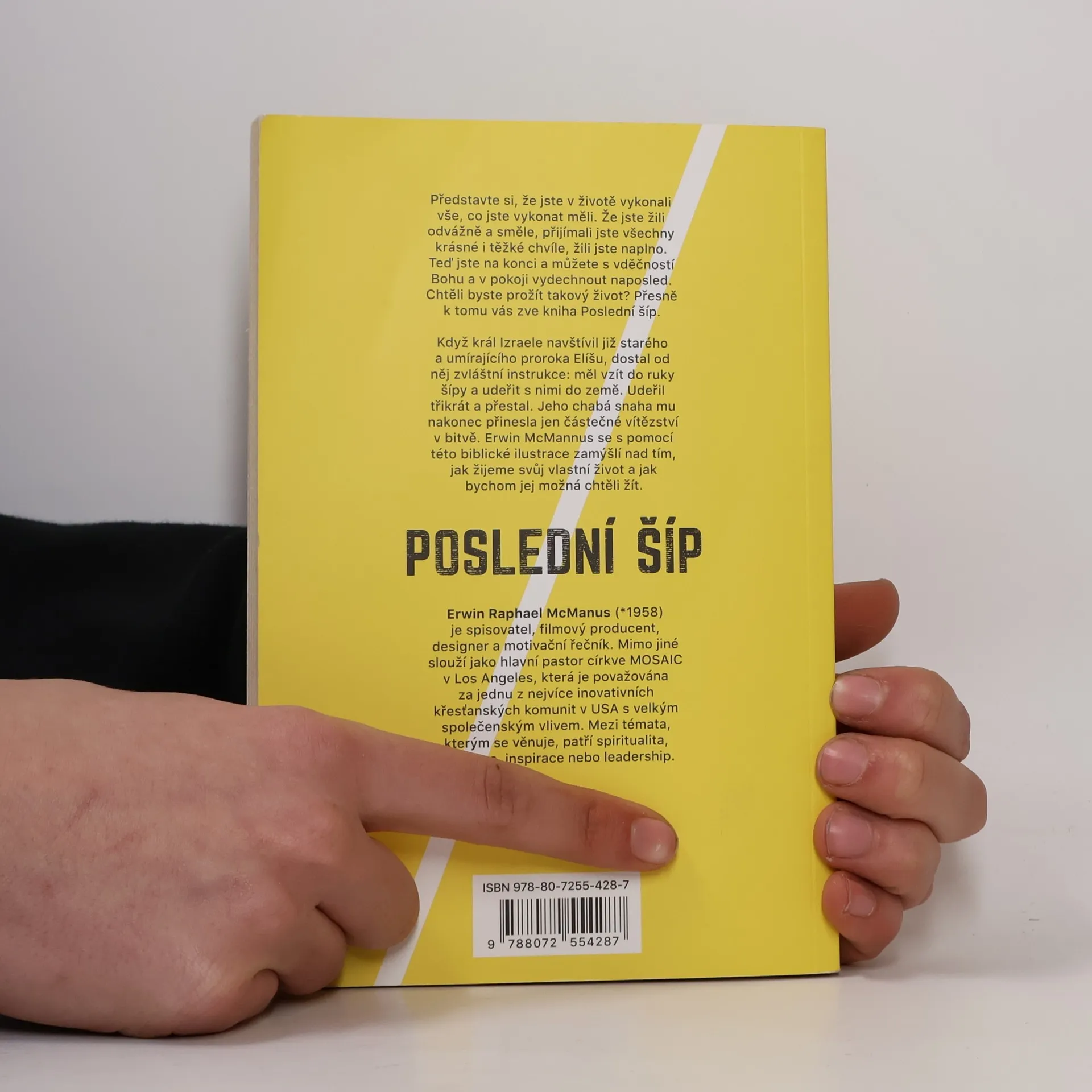 Představte si, že jste v životě vykonali vše, co jste vykonat měli. Že jste žili odvážně a směle, přijímali jste všechny krásné i těžké chvíle, žili jste naplno. Teď jste na konci a můžete s vděčností Bohu a v pokoji vydechnout naposled. Chtěli byste prožít takový život? Přesně k tomu vás zve kniha Poslední šíp. Když král Izraele navštívil již starého a umírajícího proroka Elíšu, dostal od něj zvláštní instrukce: měl vzít do ruky šípy a udeřit s nimi do země. Udeřil třikrát a přestal. Jeho chabá snaha mu nakonec přinesla jen částečné vítězství v bitvě. Erwin McManus se s pomocí této biblické ilustrace zamýšlí nad tím, jak žijeme svůj vlastní život a jak bychom jej možná chtěli žít.