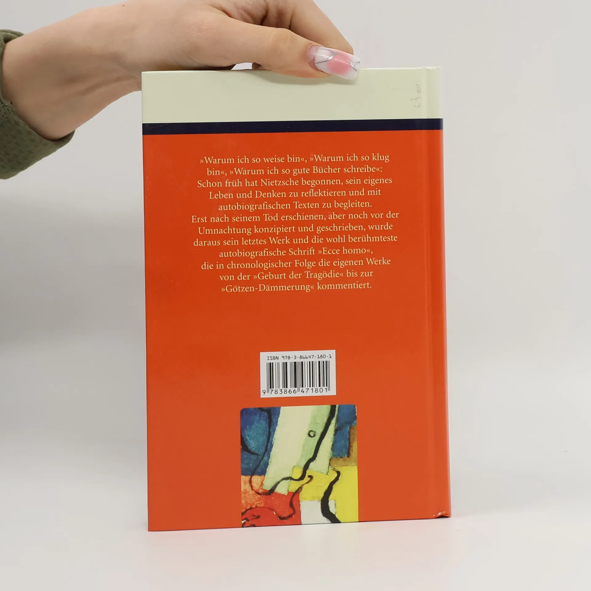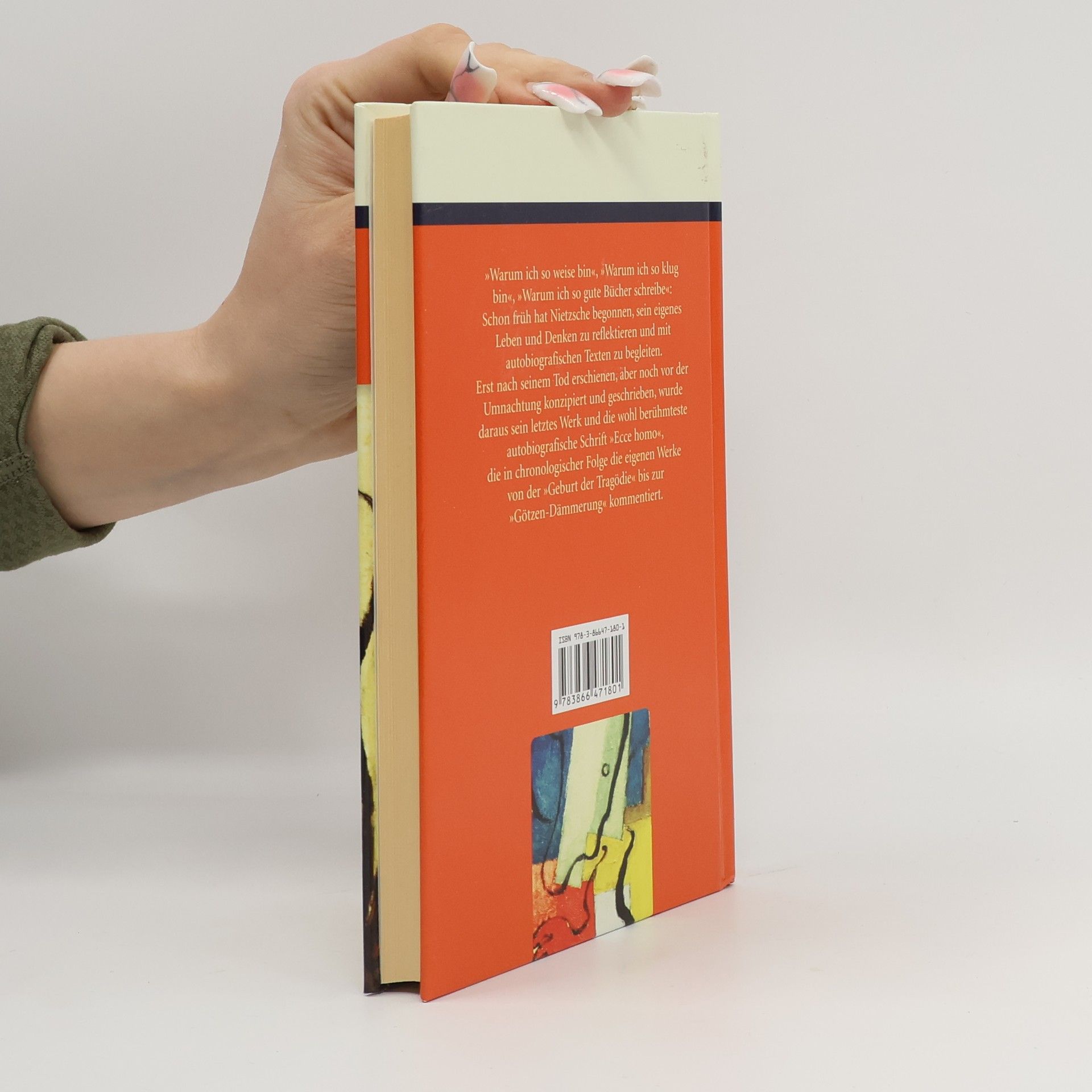 'Warum ich so weise bin', 'Warum ich so klug bin', 'Warum ich so gute Bücher schreibe': Schon früh hat Nietzsche begonnen, sein eigenes Leben und Denken zu reflektieren und mit autobiographischen Texten zu begleiten. Erst nach seinem Tod erschienen, aber noch vor der Umnachtung konzipiert und geschrieben wurde daraus sein letztes Werk und die wohl berühmteste autobiographische Schrift 'Ecce homo', die in chronologischer Folge die eigenen Werke von der 'Geburt der Tragödie' bis zur 'Götzen-Dämmerung' kommentiert.