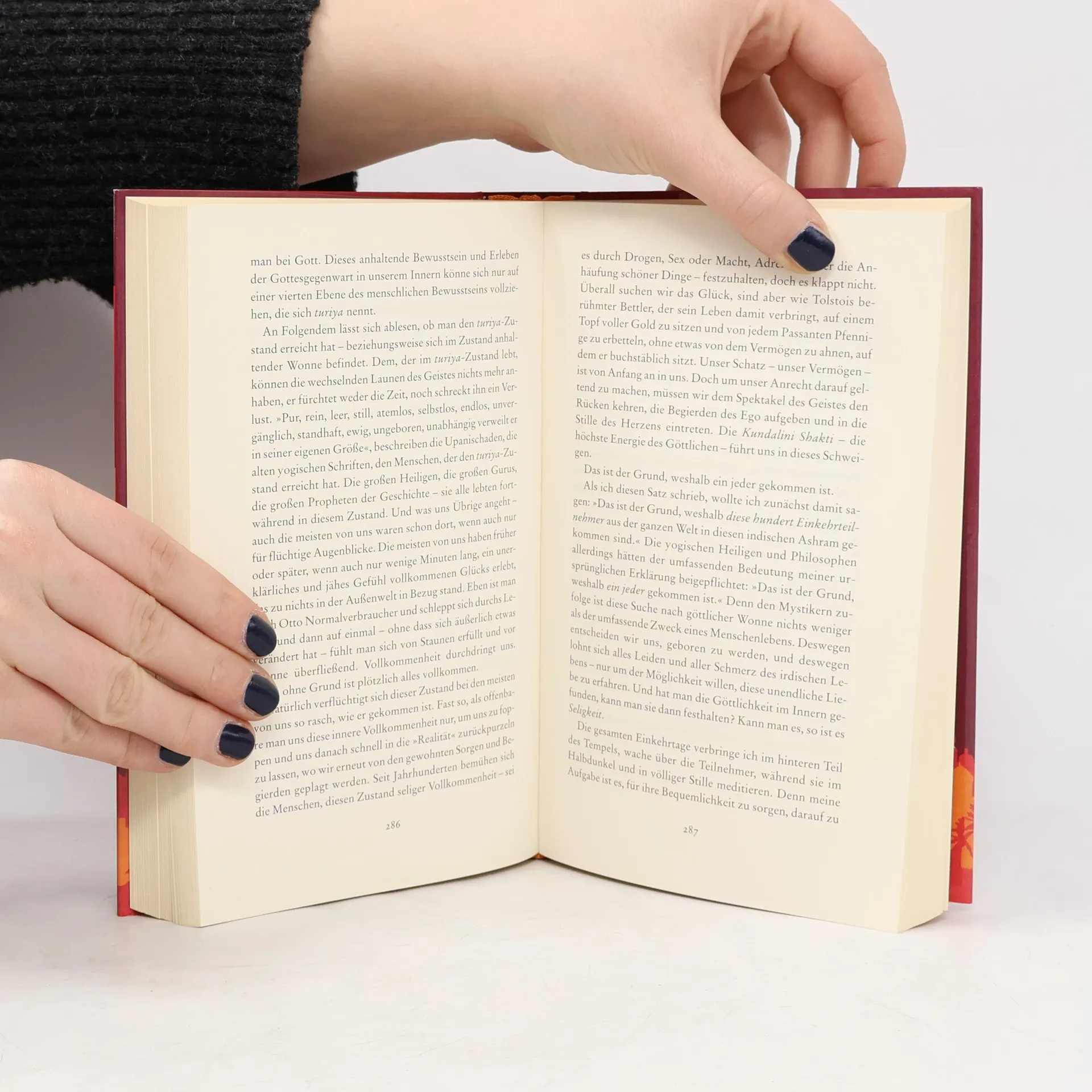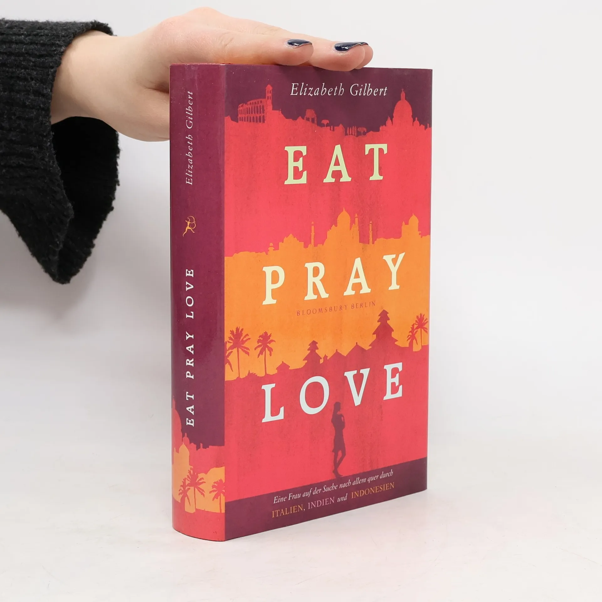 Elizabeth ist Anfang dreißig und hat eine schmerzvolle Scheidung hinter sich. Sie steht vor dem Nichts und beschließt, alles, was sie bisher hatte, in New York zurückzulassen und ein neues Leben zu beginnen. Sie verbringt vier Monate in Rom, lernt italienisch, genießt das Leben und vor allem das gute Essen. Es folgen vier weitere Monate in einem indischen Ashram, wo sie sich in endlosen Meditationen übt. In Bali schließlich erfährt sie die glückliche Balance zwischen innerem und äußerem Glück. Mit Selbstironie, Charme und Intelligenz erzählt die Autorin von ihrer Reise durch die Welt und zu sich selbst. Eine ehrliche und bewegende Selbsterfahrungsgeschichte für alle, die mutig Verantwortung für sich selbst übernehmen wollen. Als englischsprachige Ausgabe bei Bloomsbury Publishing mit ISBN 0-7475-8288-2 lieferbar