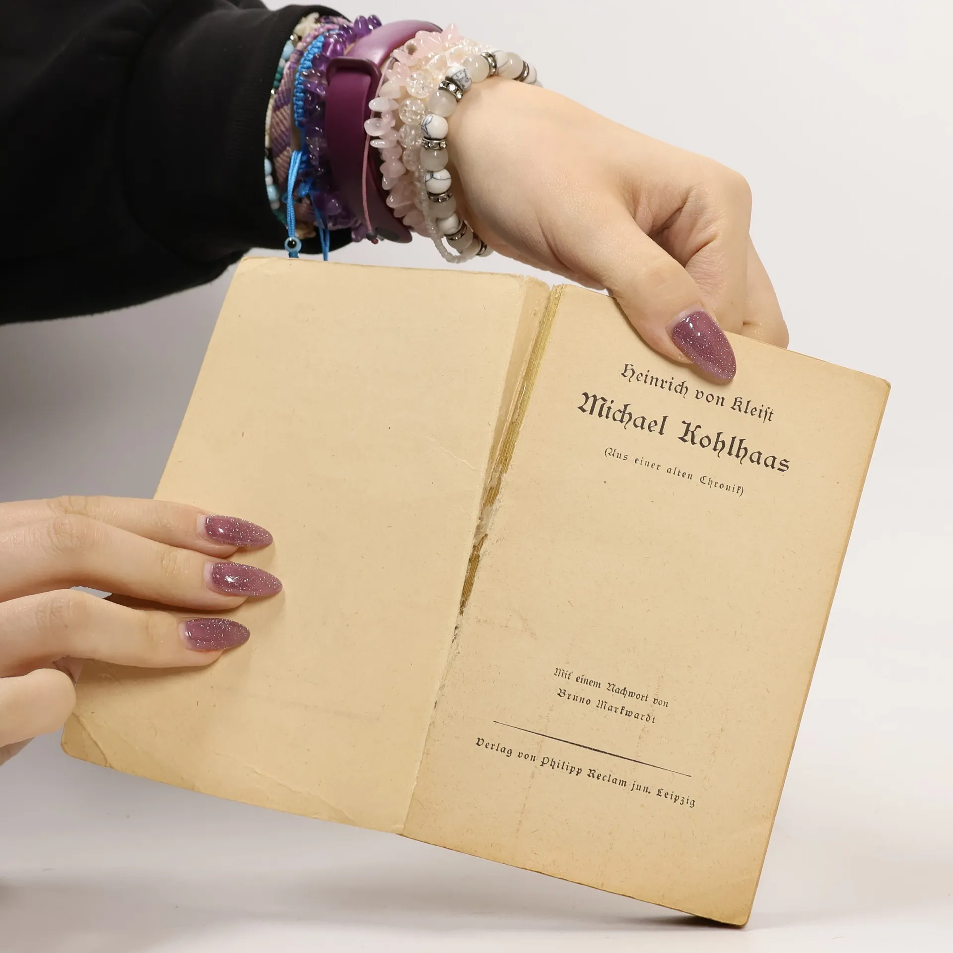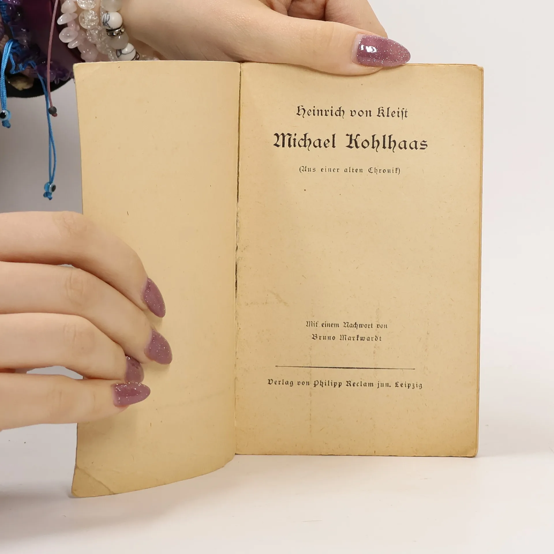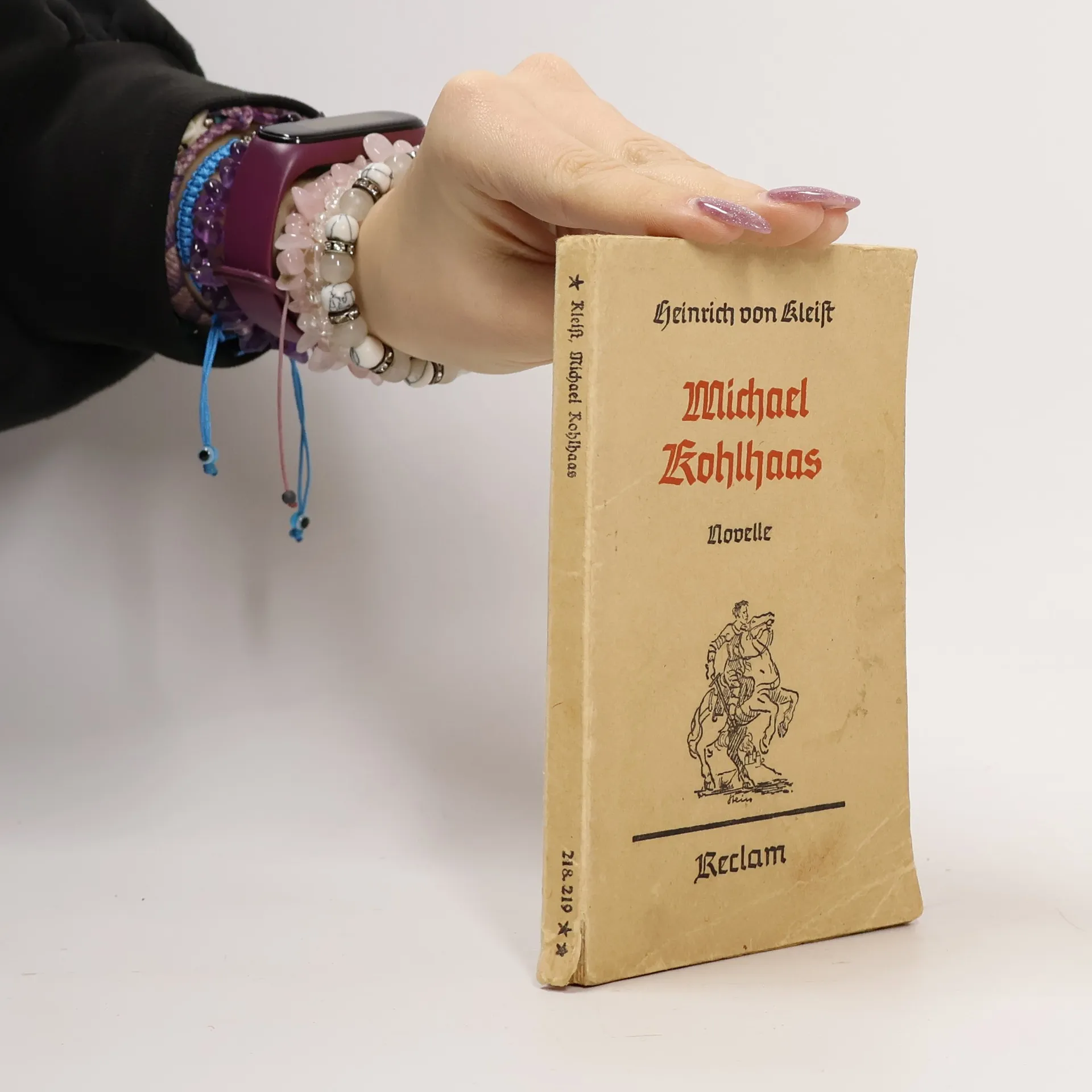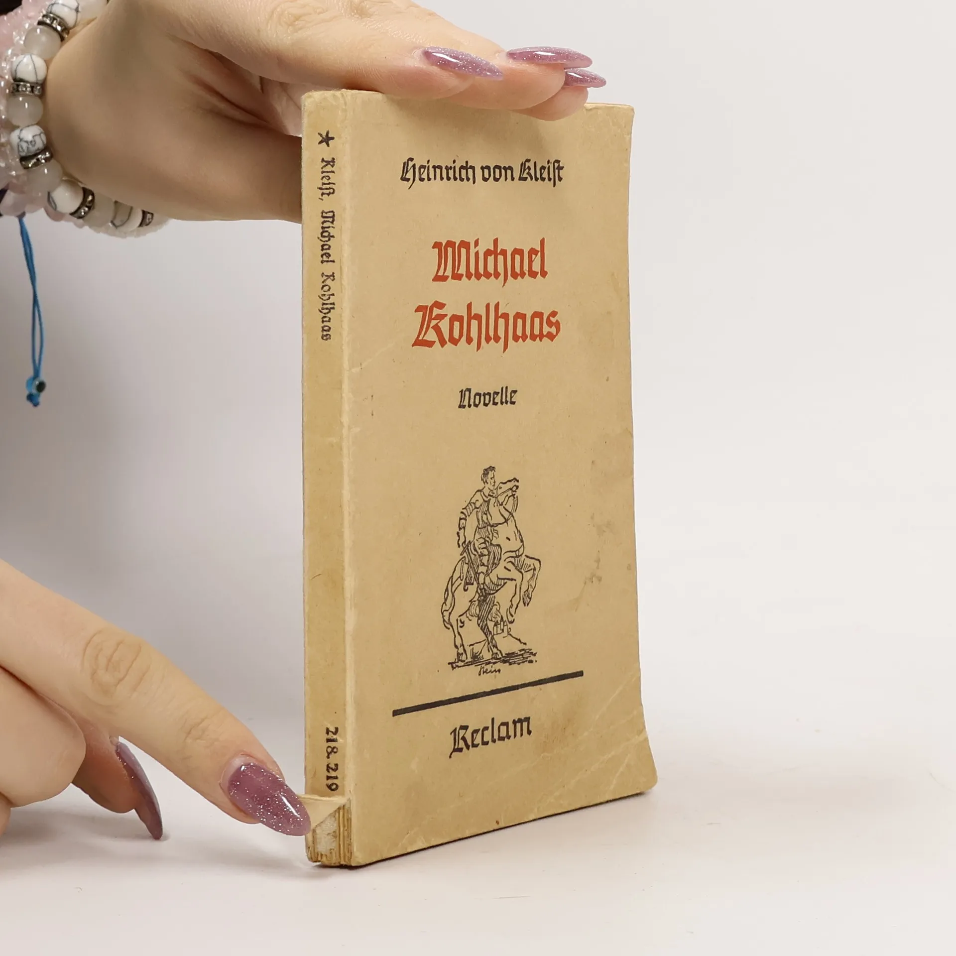 Der Rosshändler Michael Kohlhaas sucht sein Recht und wird darüber zum Räuber. Er muss erkennen, dass es das absolute Recht nicht geben kann, sondern dass die Rechtsprechung an die Gesellschaft gebunden ist. Schliesslich ereilt ihn selbst das Gericht, dem er sich beugt: Er stirbt auf dem Schaffot. Diese Novelle beruht, wie der Untertitel angibt, auf einer alten Chronik, aus der der Anhang Auszüge bringt. Über Leben und Werk des Dichters gibt das Nachwort Auskunft. Die Anmerkungen enthalten Erklärungen für den Schüler.